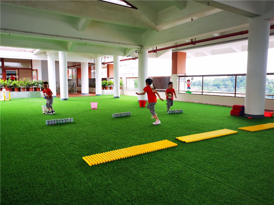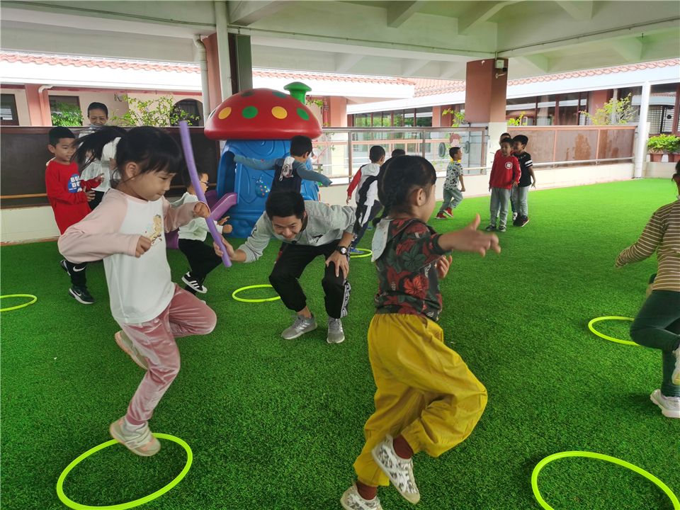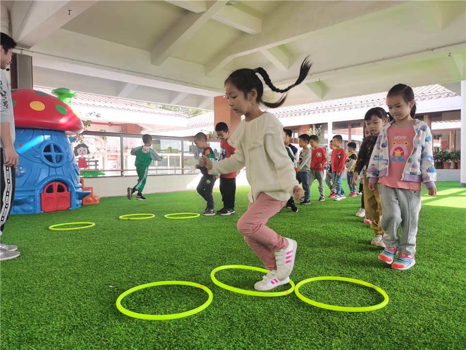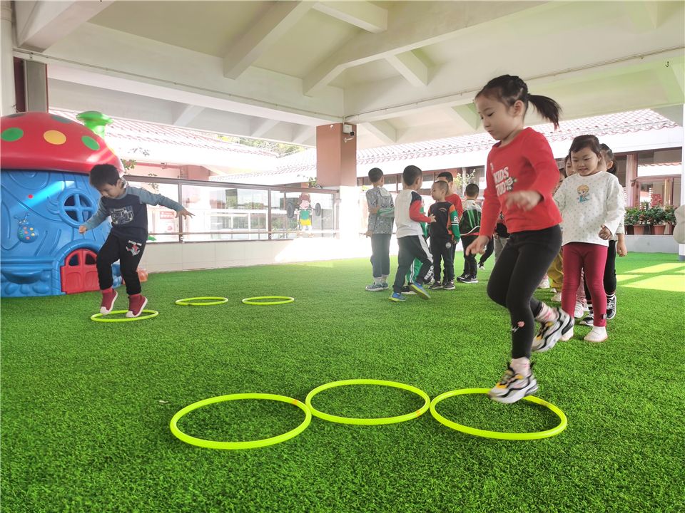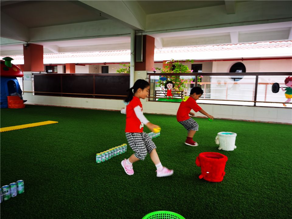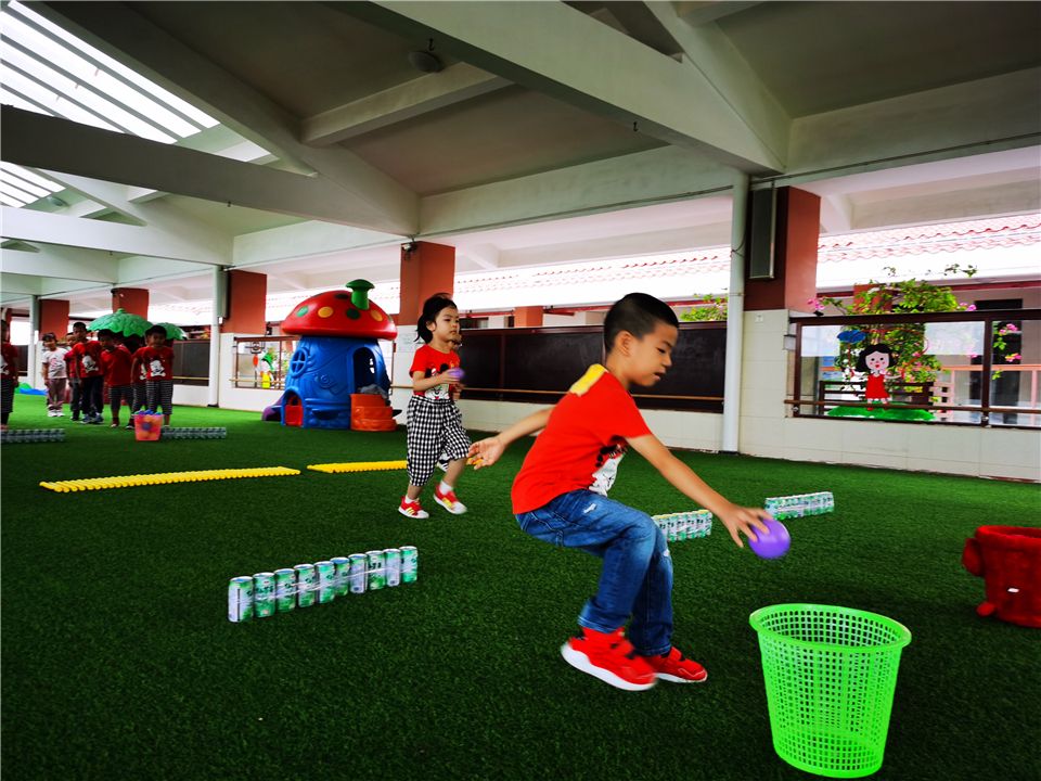 平衡步道、海洋球、易拉罐制作的障碍物、爬行垫、呼啦圈......简单的道具就能让孩子们的体育动作得到锻炼和发展,寓教于乐其中。