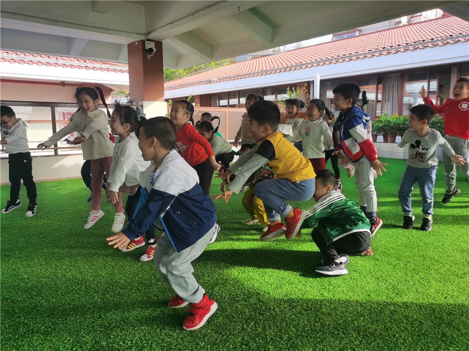 热闹的现场,劲爆的音乐,迅速地调动起了小朋友们的运动细胞。“一二三四,起飞咯;二二三四,谁的小手能摸到你的脚尖呢......”小朋友们做完热身运动,耐心听小龙哥哥介绍完游戏规则后,早已摩拳擦掌,准备大展身手了。