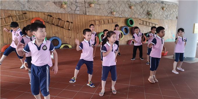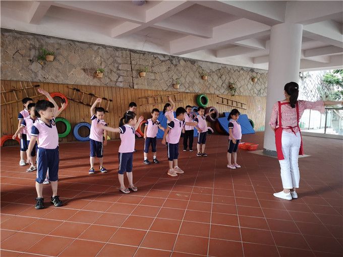 我们在老师的带领下,精神抖擞、神气十足,在音乐声中,跟着欢快的节奏,唱着、跳着、走着、跑着,跳出了可爱,跳出了欢乐,跳出了对运动的喜爱,对美好健康的追求。