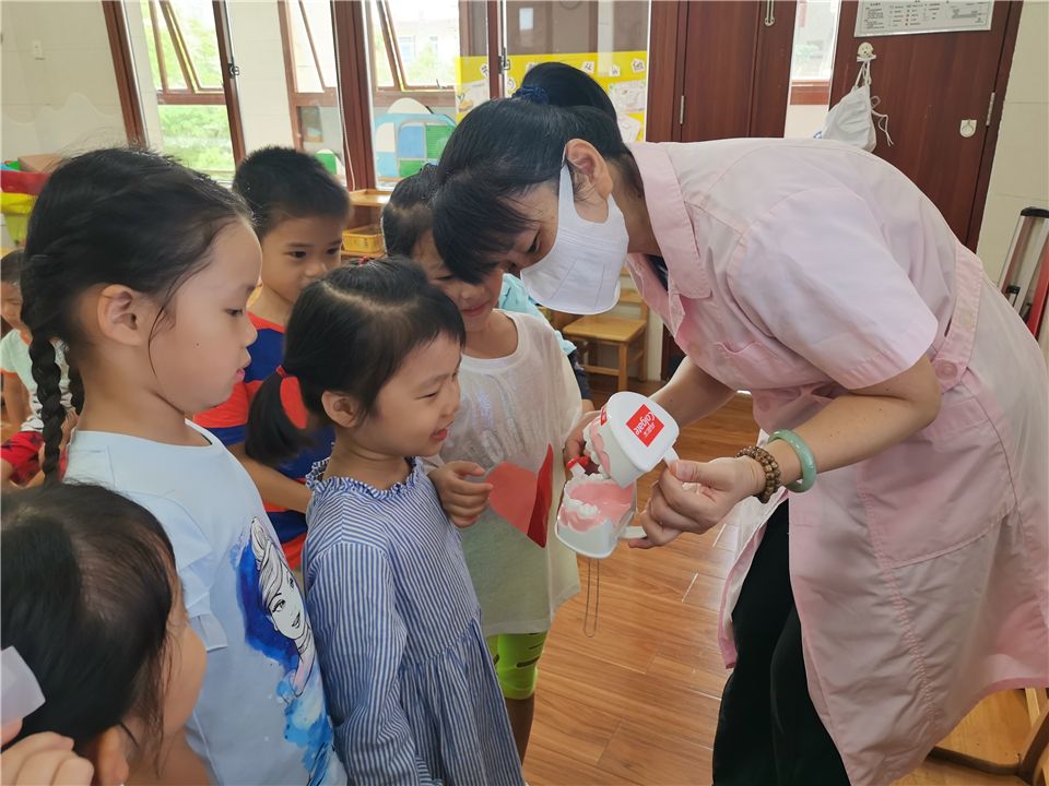 瞧!保健医生史老师走进班级,告诉小朋友们牙齿会掉是因为它的换牙期到了。小朋友们6岁就会开始换牙,换牙是乳牙脱落,恒牙长出的过程。换牙意味着自己长大了,应该更好地保护我们的第二幅牙齿。2岁半到6岁换牙前属于乳牙期,建议早晚刷牙,饭后漱口,6岁到12岁属于替牙期,不仅要做好口腔清洁,还要注意乳恒牙交替,有些小朋友会出现恒牙长出来但是乳牙没掉,建议把滞留的乳牙拔掉,否则恒牙容易长歪。推荐从3岁开始使用儿童含氟牙膏。接下来史老师还给小朋友们讲解牙齿的构造,详细介绍了如何正确地刷牙。小朋友们听得多认真呀!