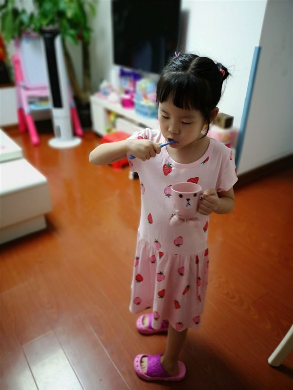 挤上牙膏,拿起水杯,我要开始刷牙喽。