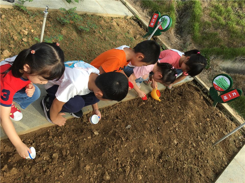 接下来孩子们用沾满泥土的双手将种子用土壤缓缓地盖起来,还用小手轻轻地拍打着已经盖好的土壤,认真地样子真的好可爱啊!最后还小心翼翼地给种子们浇了水,用自己的爱心滋润着它们快快发芽,快快长大!