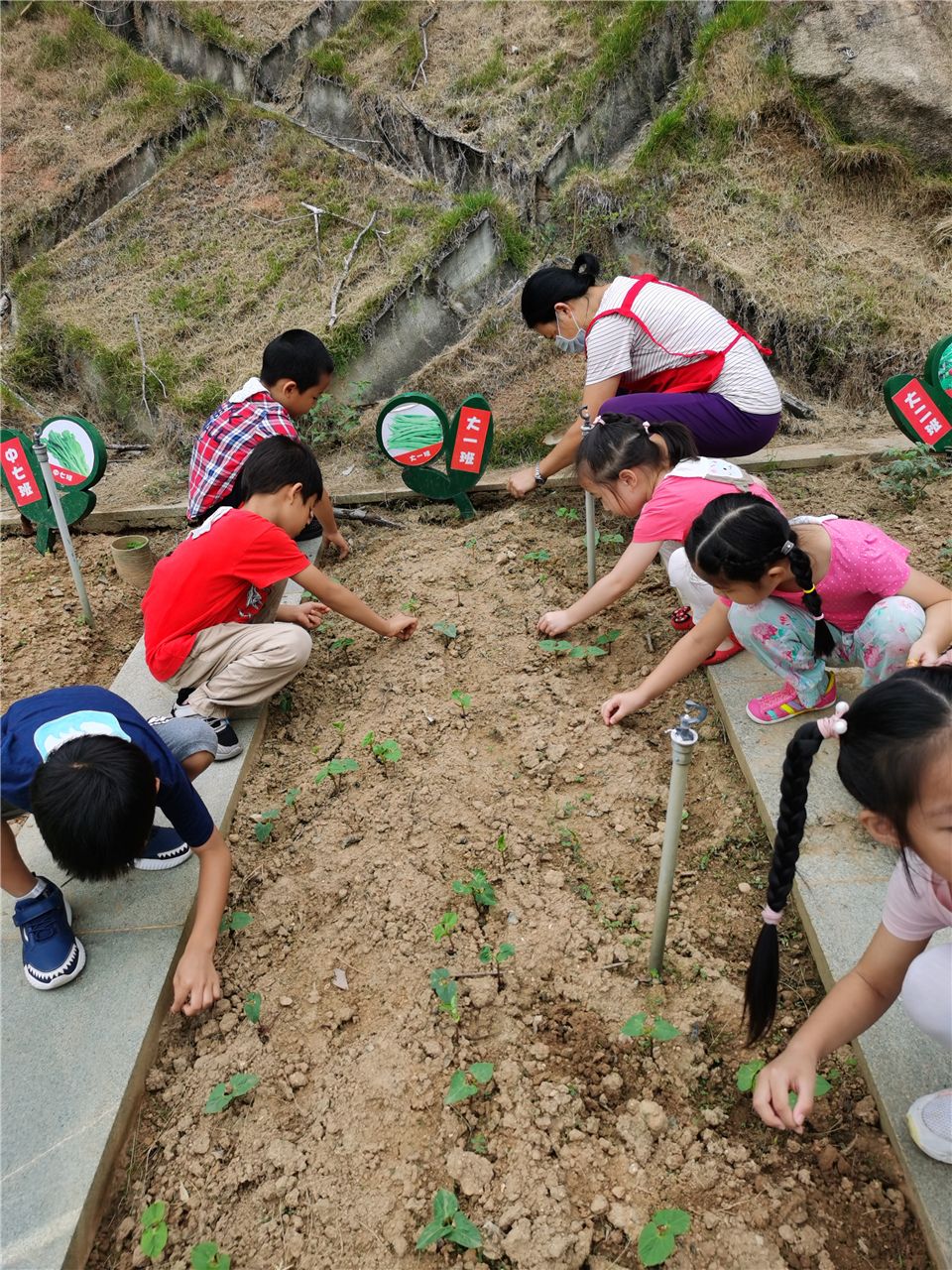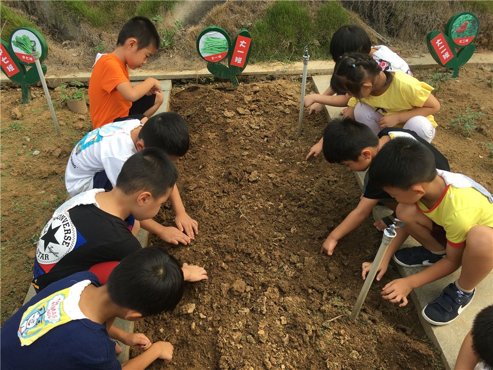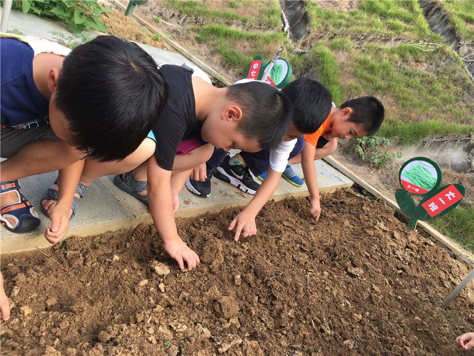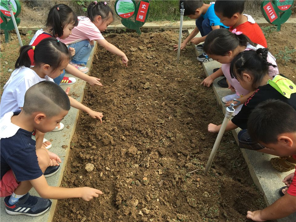 为了让种子能够在舒适的环境中生根发芽,在陈老师的带领下,孩子们认认真真地把菜地的土壤翻新了一遍。准备要播种啦!