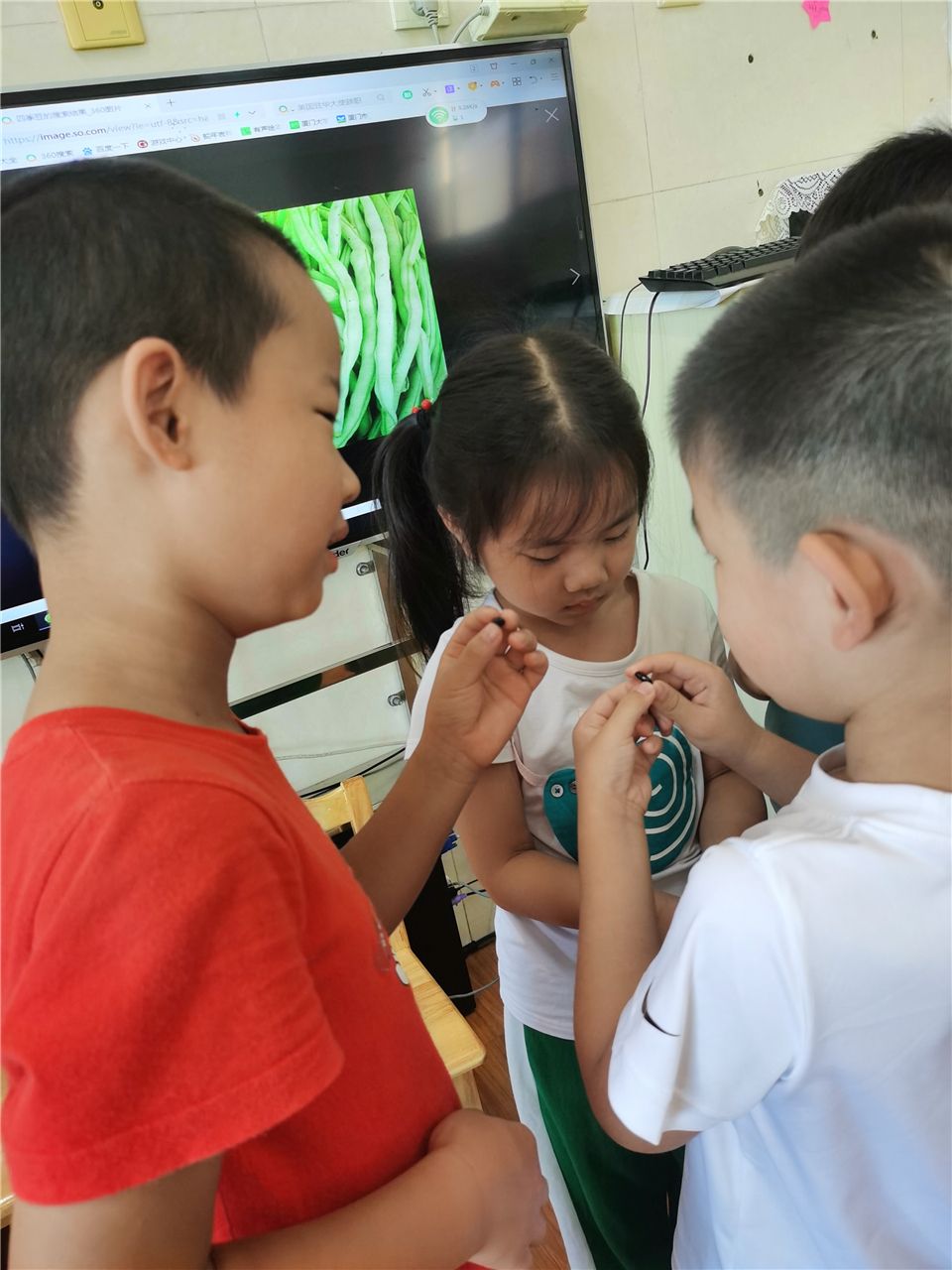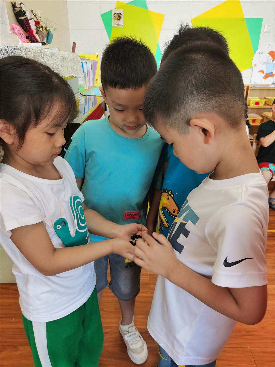 “快看我手里的种子,它们是椭圆形的,还都是黑黑的!”