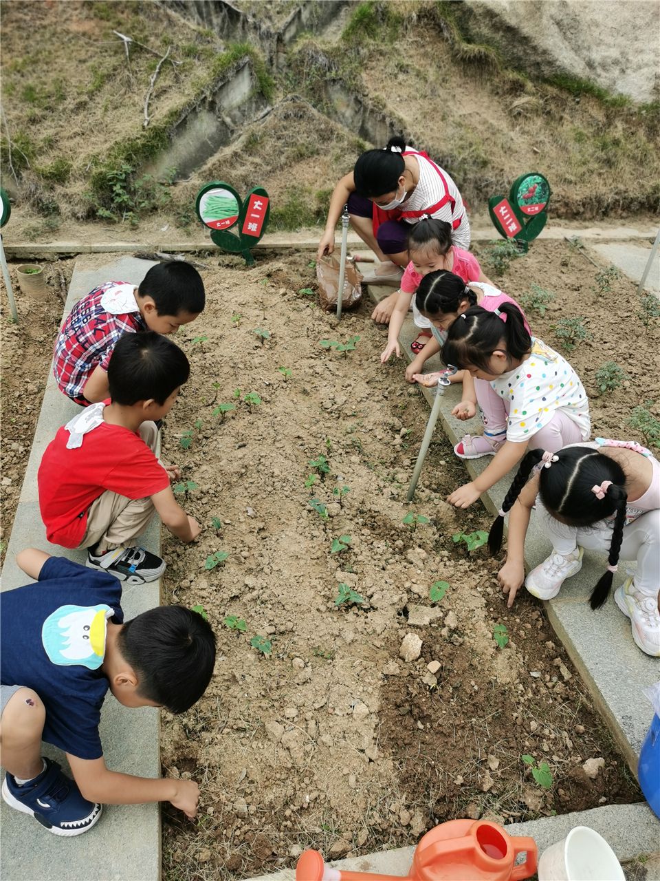 在厦大幼儿园的小山坡上,有一块属于我们大一班自己的小菜地,在这里孩子们可以自己动手播种、浇水、施肥、除草......最后收获成果!这个过程是孩子们观察、成长的路程,充满着汗水和喜悦!今天他们就要正式踏上这段“旅途”啦!