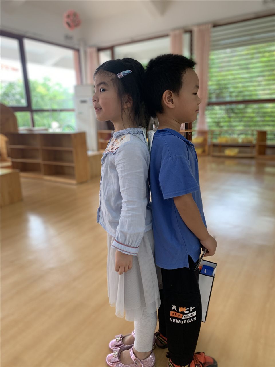 小朋友用不同的方式了解自己的身高情况。看来,长高的不仅是身体,还有小朋友们的学习能力!这是大班小朋友的“样子”