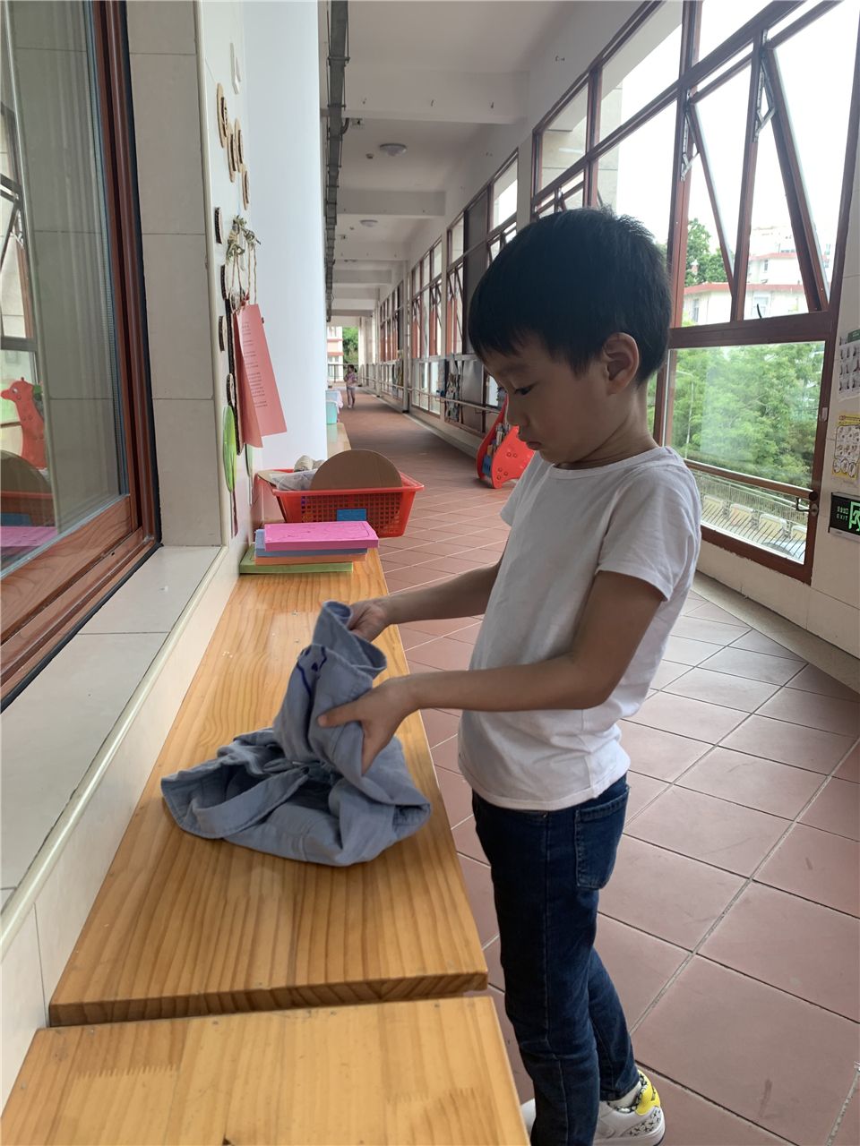 左手抱一抱,右手抱一抱,先来点点头,再来弯弯腰。看我的衣服叠好了!