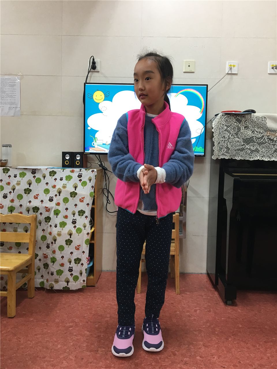 然然也上台告诉大家,吃东西要勤洗手!
