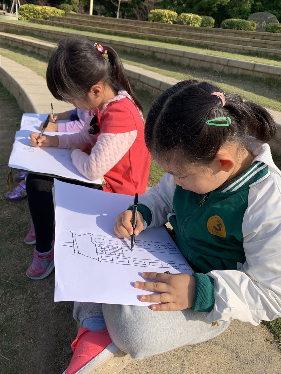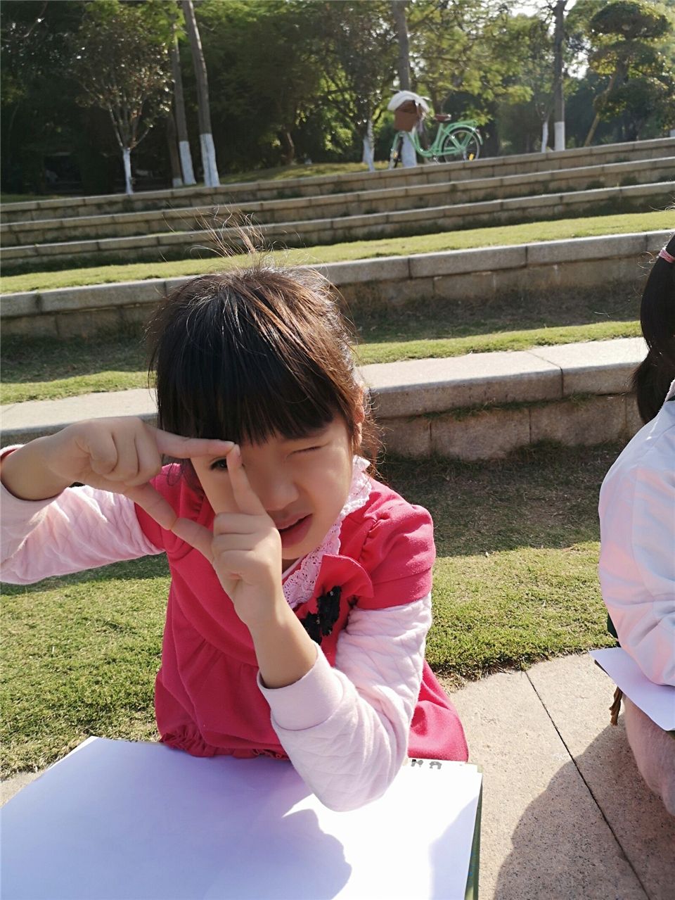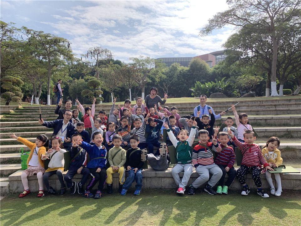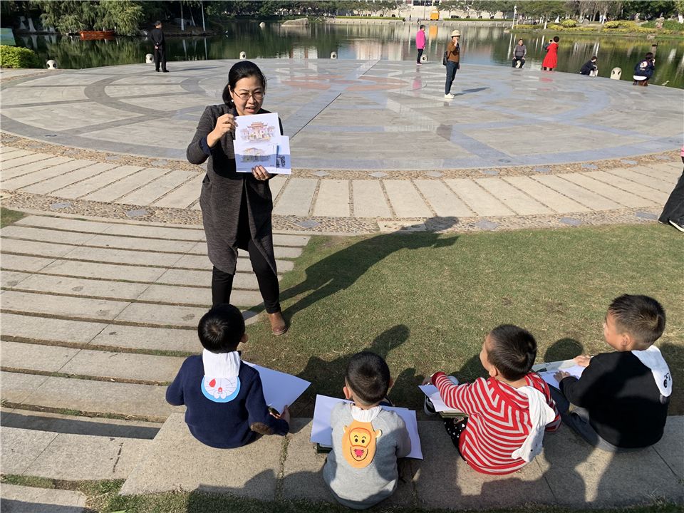 “来,请小朋友用小手做出开枪的手势,再把其中一把小手枪倒过来,两把小手枪合在一起,变成一个取景框......”在宇博妈妈生动、形象的比喻引导下,小朋友们纷纷用手势进行了取景:芙蓉湖、黑天鹅、嘉庚广场......冬日的暖阳打在一张张专注的小脸上,仿佛一群小画家。