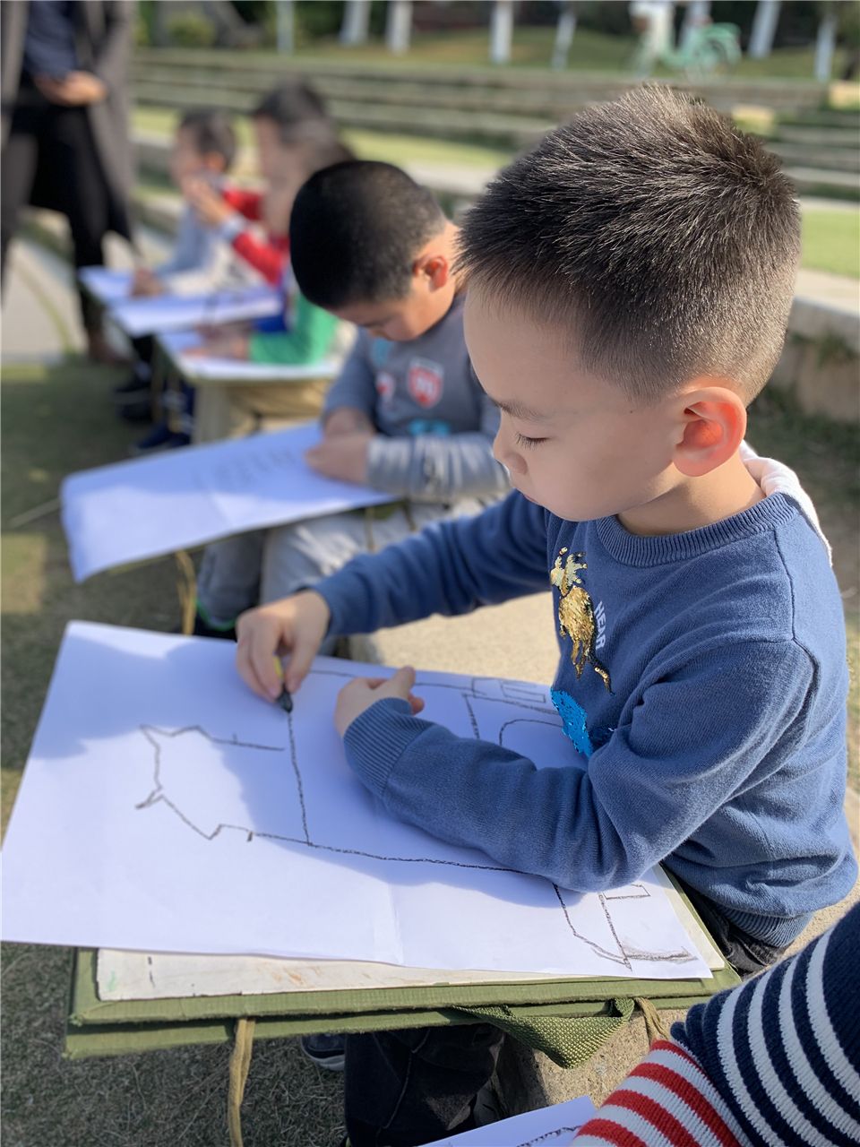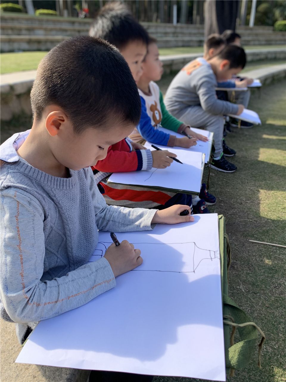 冬日的晨,阳光明媚,大四班小朋友们期盼已久的外出写生活动开始啦!这是大四班的小朋友第一次外出写生,瞧,背好了小画板、排着整齐的队伍,在两位志愿者安保爸爸的随行护送下,大四班小朋友快乐出发。