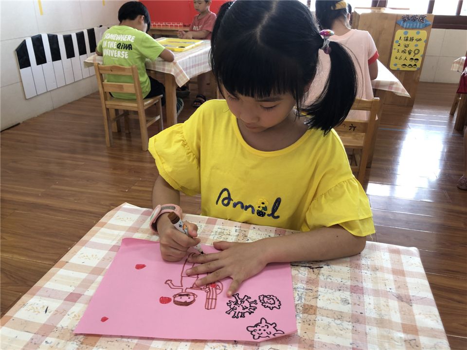 活动中,小朋友们还当起了小小设计师,纷纷动动小脑筋,设计了各种抗击病毒的防护标识,大家表示共同守护健康,抗击疫情从我做起!