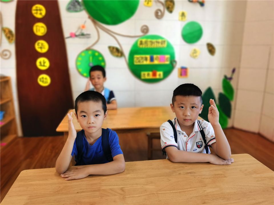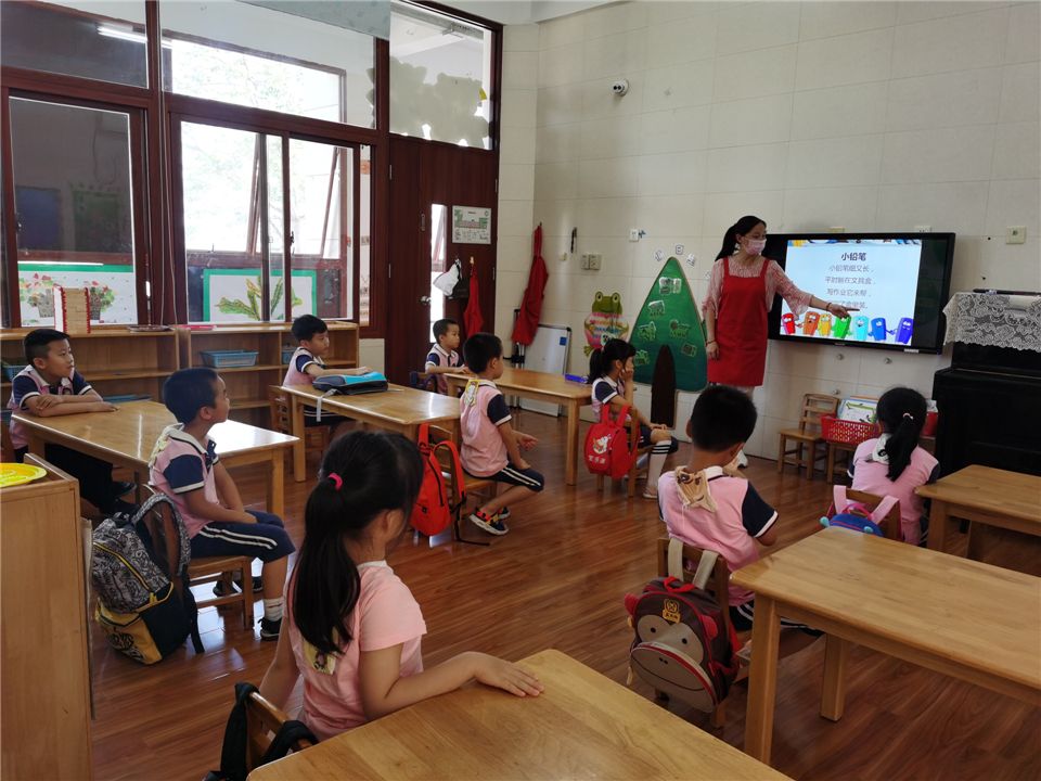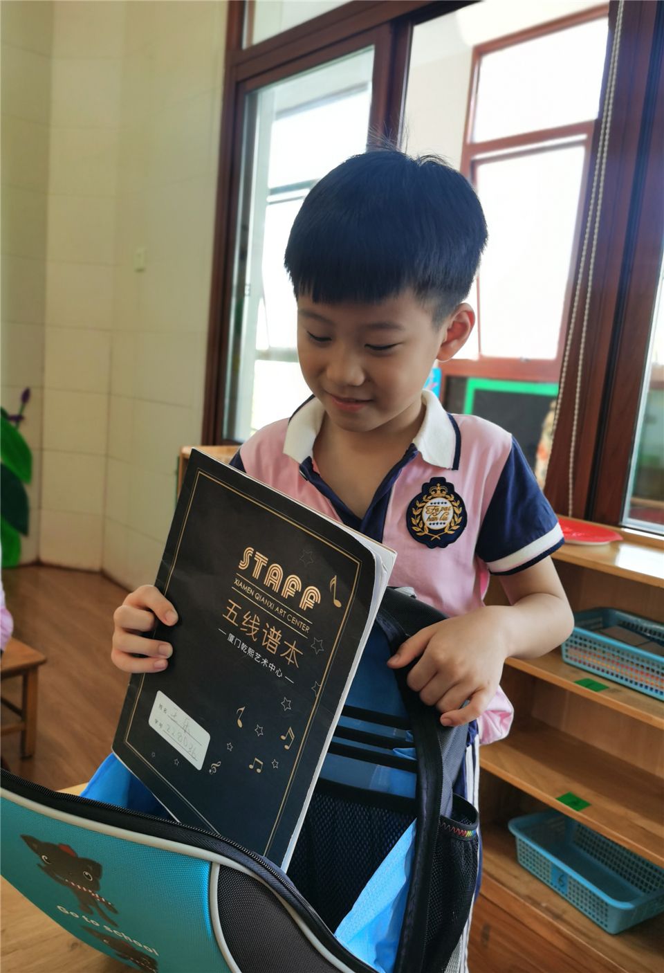 “我们背上小书包,高高兴兴上学校。我们背上小书包,是个小学生了……”孩子们背上书包,用稚嫩的歌声来唱出对小学生活的向往。