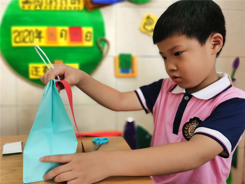 书包有不同的形状、颜色、图案,孩子们自己动手设计出一款属于自己的小书包吧!