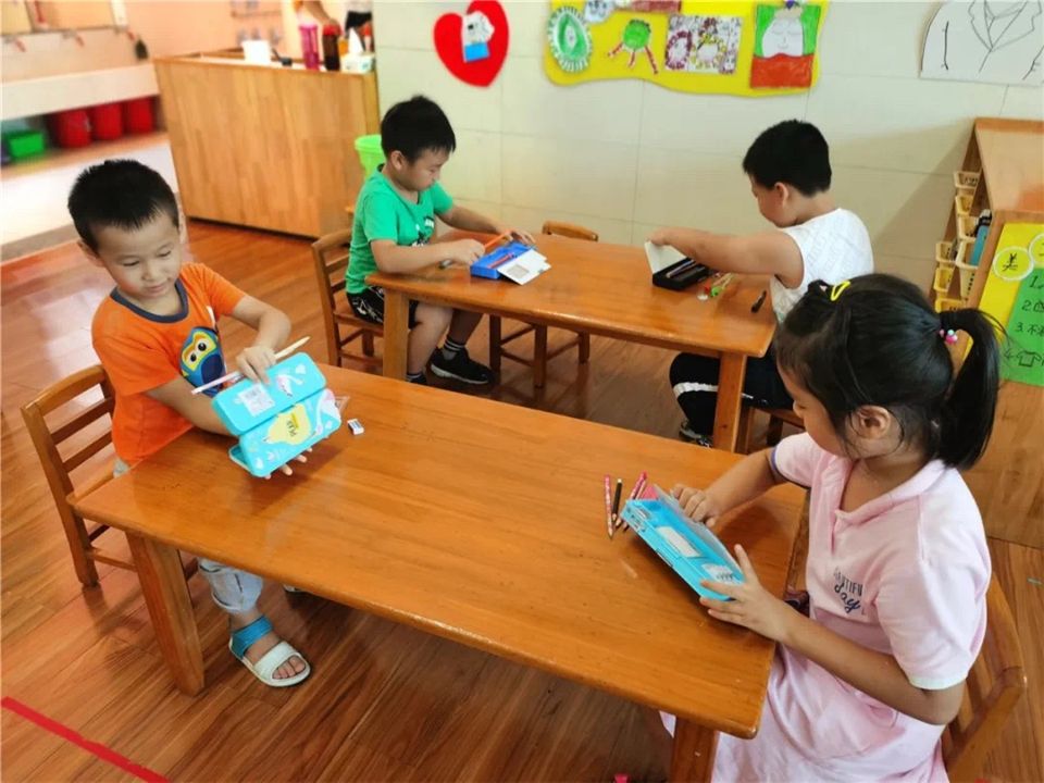 镜头二:快乐的学习生活。面对即将升入小学的大班哥哥姐姐,我们开始认真学习整理书包文具、认识时间,我们在户外活动时间充分锻炼身体、增强体质。