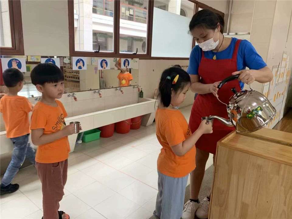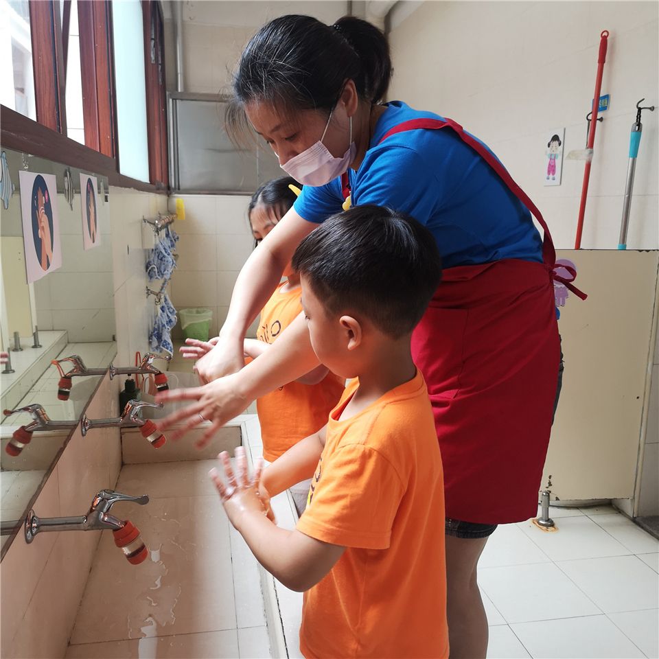 镜头一:这是疫情防控形势下的开学,萌娃们在经过“晨检五部曲”进入班级,老师就认真督促小朋友按照“七步洗手法”认认真真洗手,保持一米的距离排队、喝水.......在一日活动中做好全方位的病毒防控。