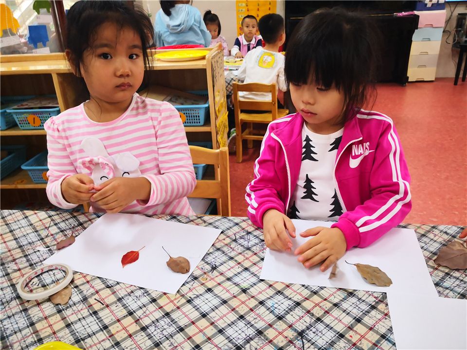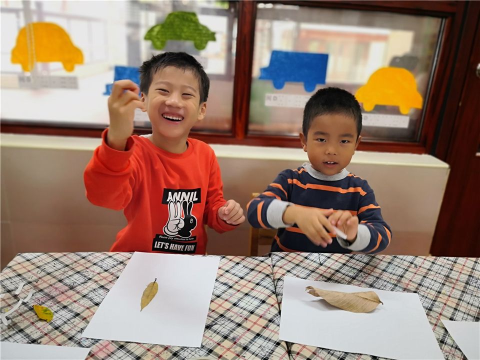和以往不同的创作,简单的借形想象,把各种颜色的小树叶变成了萌宝们心中所想的事物。看着自己的小创作,小家伙们开心到飞起来了,让我们一起期待和小树叶的下一次约会吧!