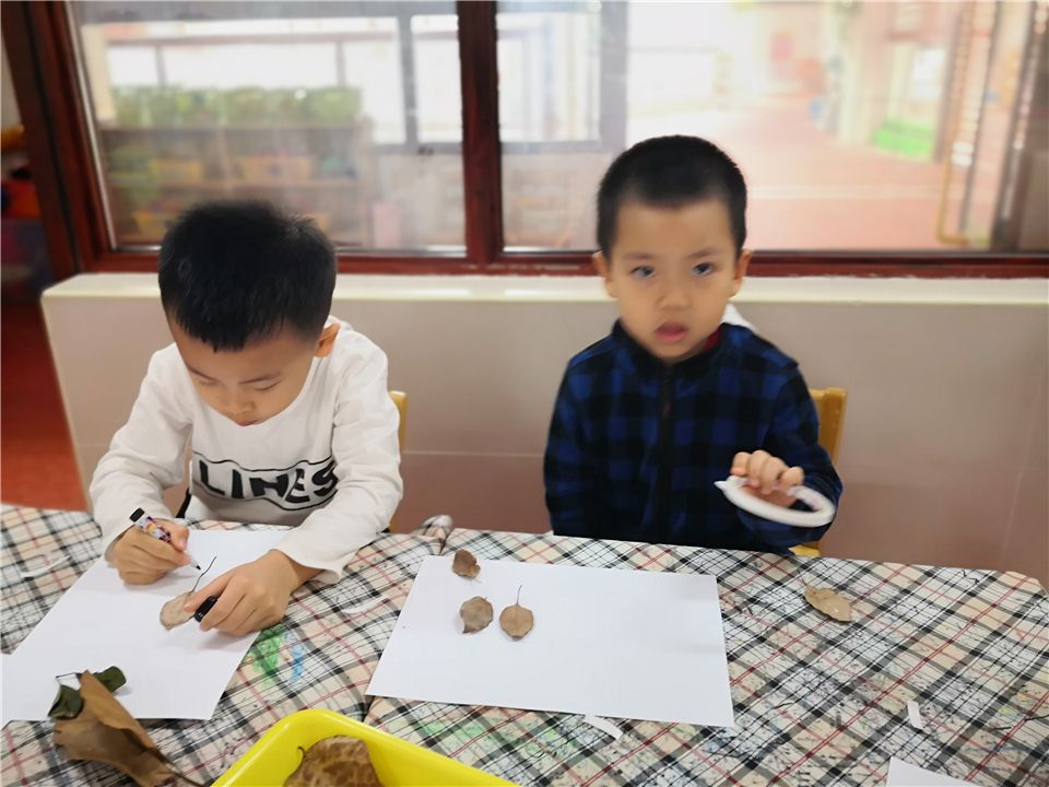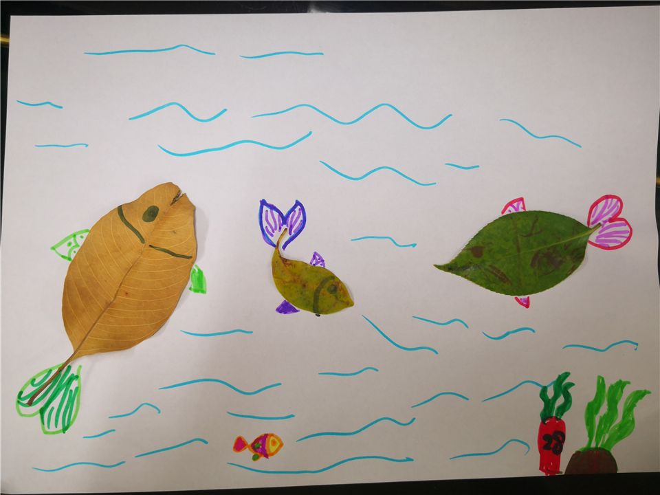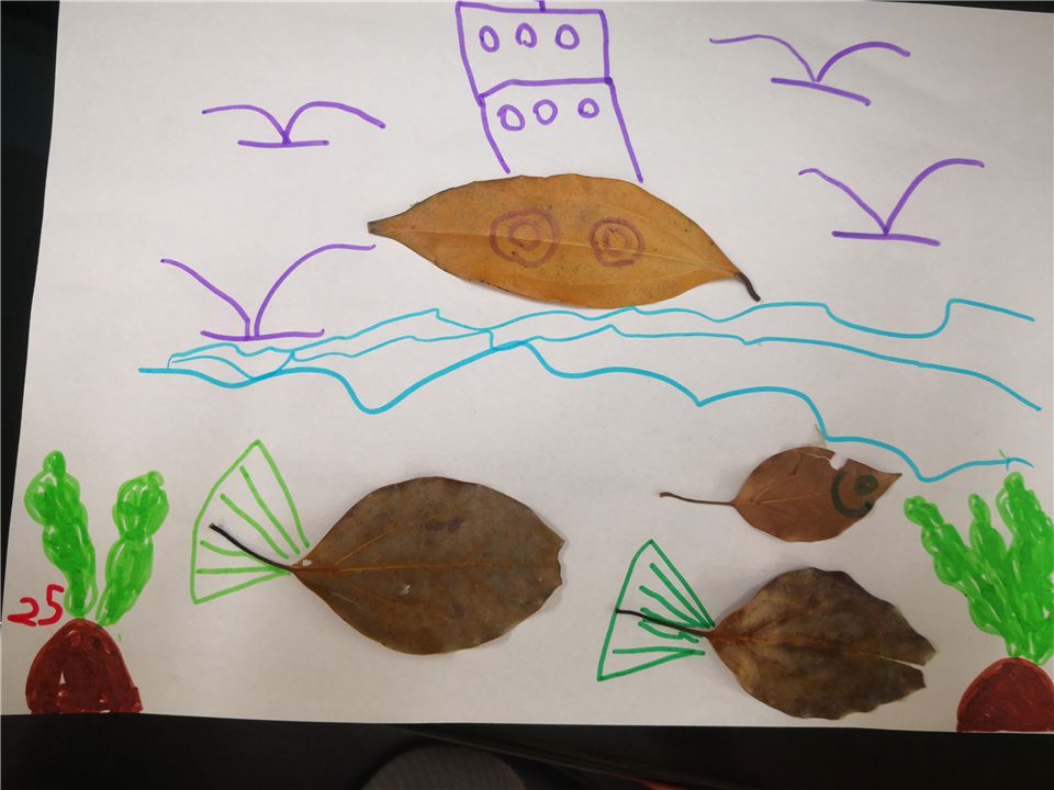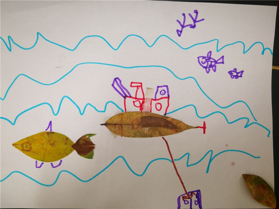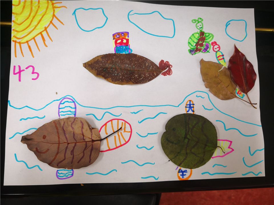 回到教室的萌宝们,迫不及待地开始他们的创作。“我的小树叶变成了小鱼的尾巴。”“哈哈哈,我的小树叶变成了小鱼的身体,我再帮它填上尾巴和漂亮的衣服。”“快看我的小树叶,它是小船的船身,我再帮它加上船舱,哈哈哈,让它游在大海里。”“这片小树叶是狐狸的脑袋,我可以添上耳朵、鼻子,再加上一条长尾巴,哈哈哈,真是太可爱了!”…