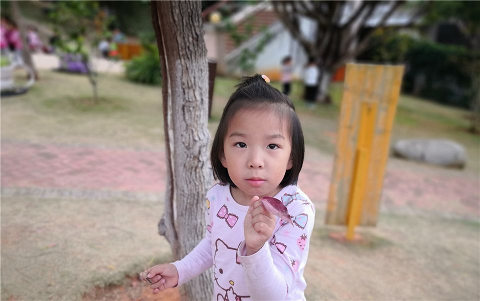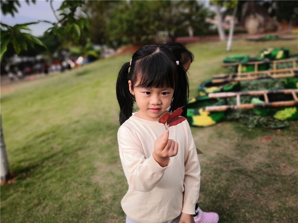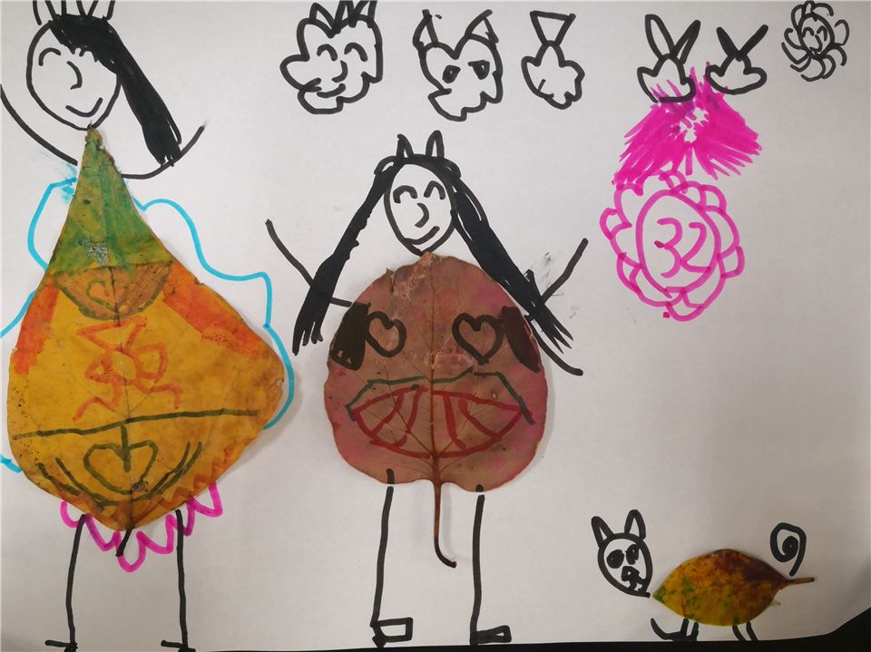 “小树叶,让我和你做朋友吧!”小雅捡起一片小树叶,轻轻地抚摸着小声地说。旁边正在揪尾巴的小宜听了兴冲冲地拾起来几片小树叶放在小雅的手上,兴奋地说:“哈哈哈,我的小树叶和你的小树叶做朋友,躺在你怀里。”这下不得了了,一群小伙伴的交朋友活动开始了。