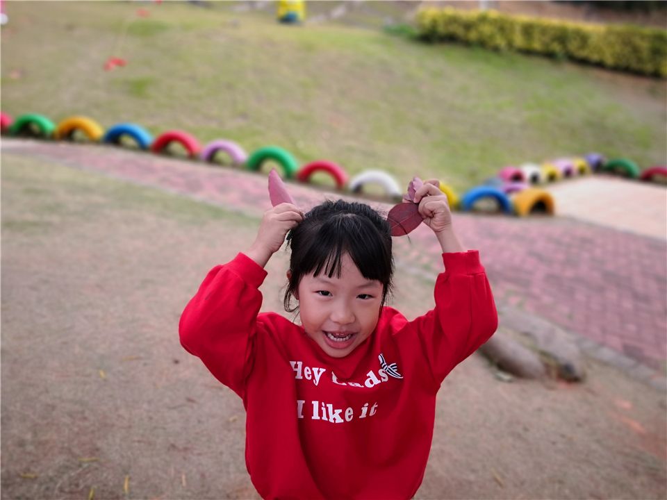 “老师,老师,我们可以把小树叶带回教室吗?”小佳小心翼翼地拿着树叶问。“可以啊,那你们想怎么和树叶做朋友呢?”“我们可以和小树叶玩‘我会变’的游戏,你看,我这样就变成一只小兔子啦!”小哆拿着两片树叶放在自己的头顶上,学着小兔子蹦蹦跳跳。小苹果连忙把三片红色的树叶叠在一起说:“我可以把树叶变成孔雀开屏!”好吧,那就让你们把小树叶带回去游戏起来吧。