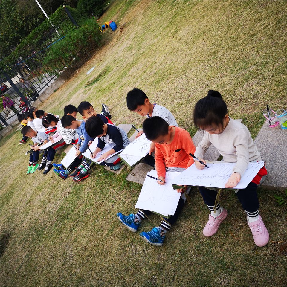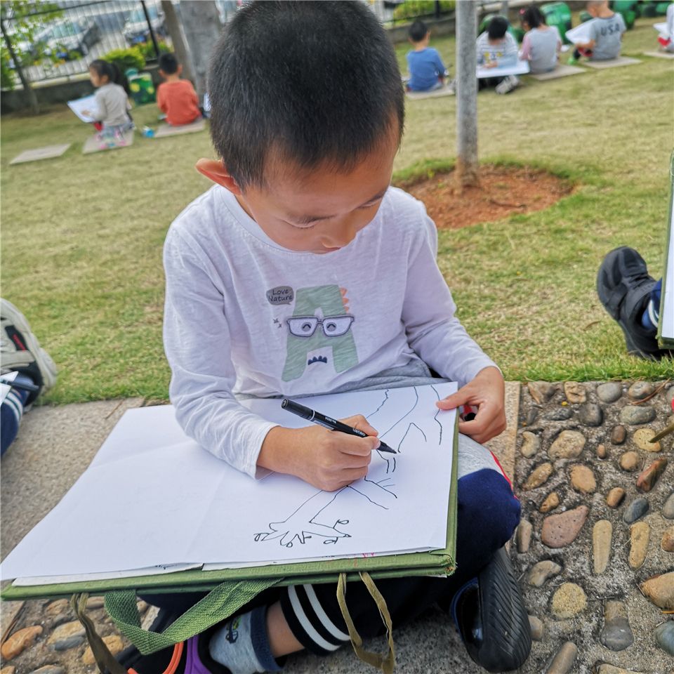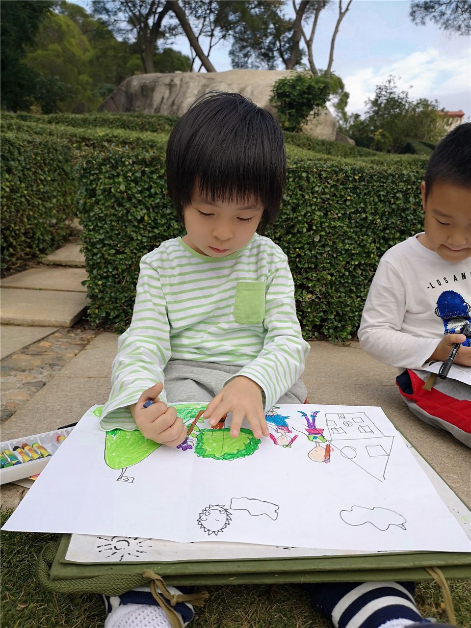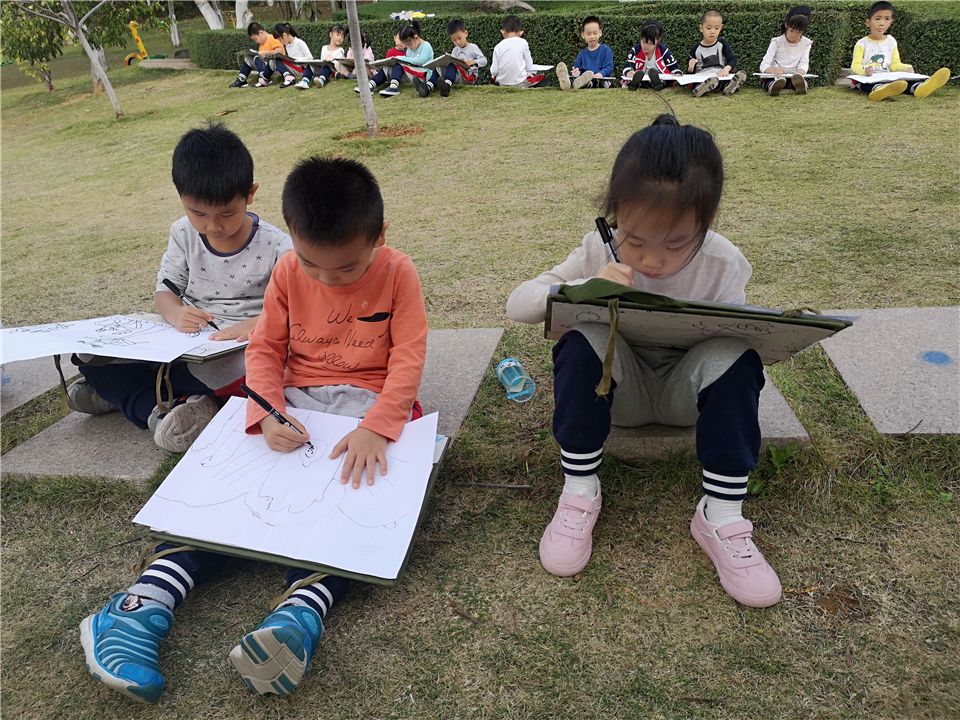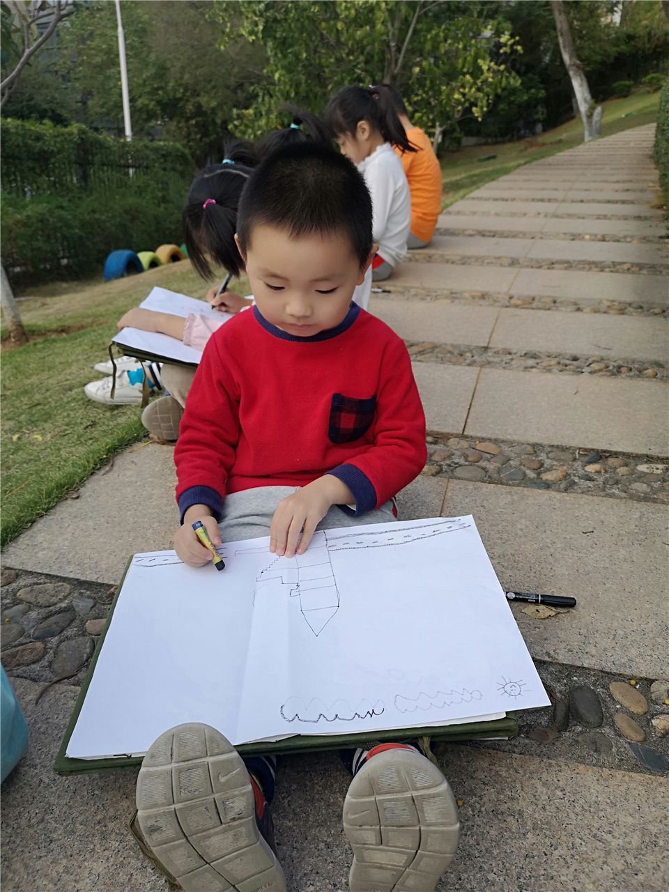在这每天游戏的小山坡写生大四班的萌娃还是头一次呢!按奈不住激动地心情开始三三两两交流等下自己要用画笔记录下来哪一出的美景。