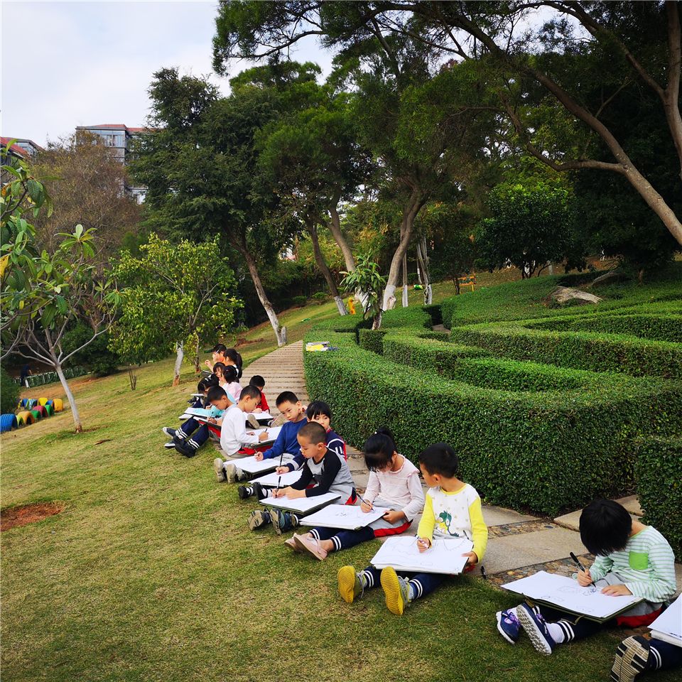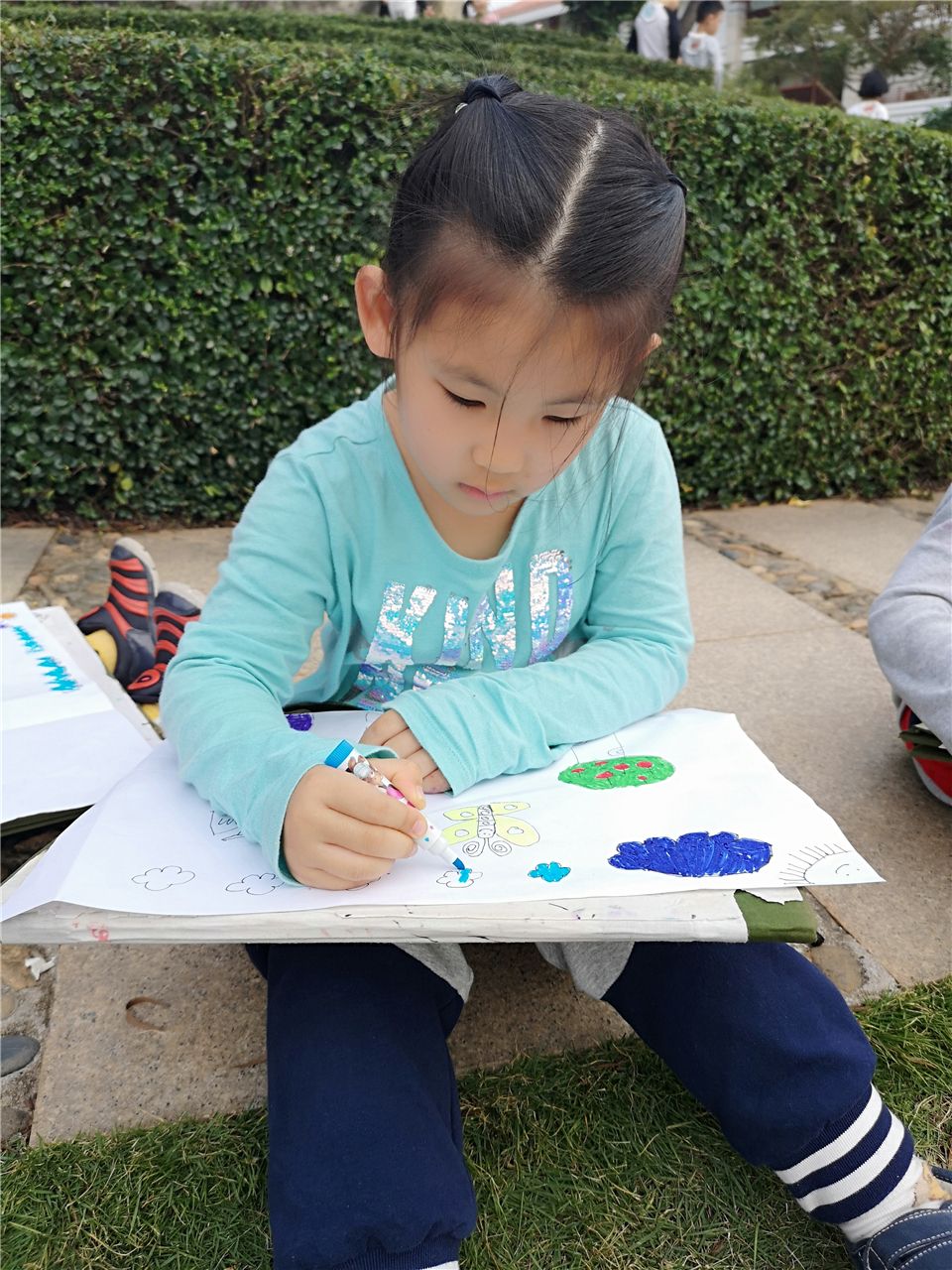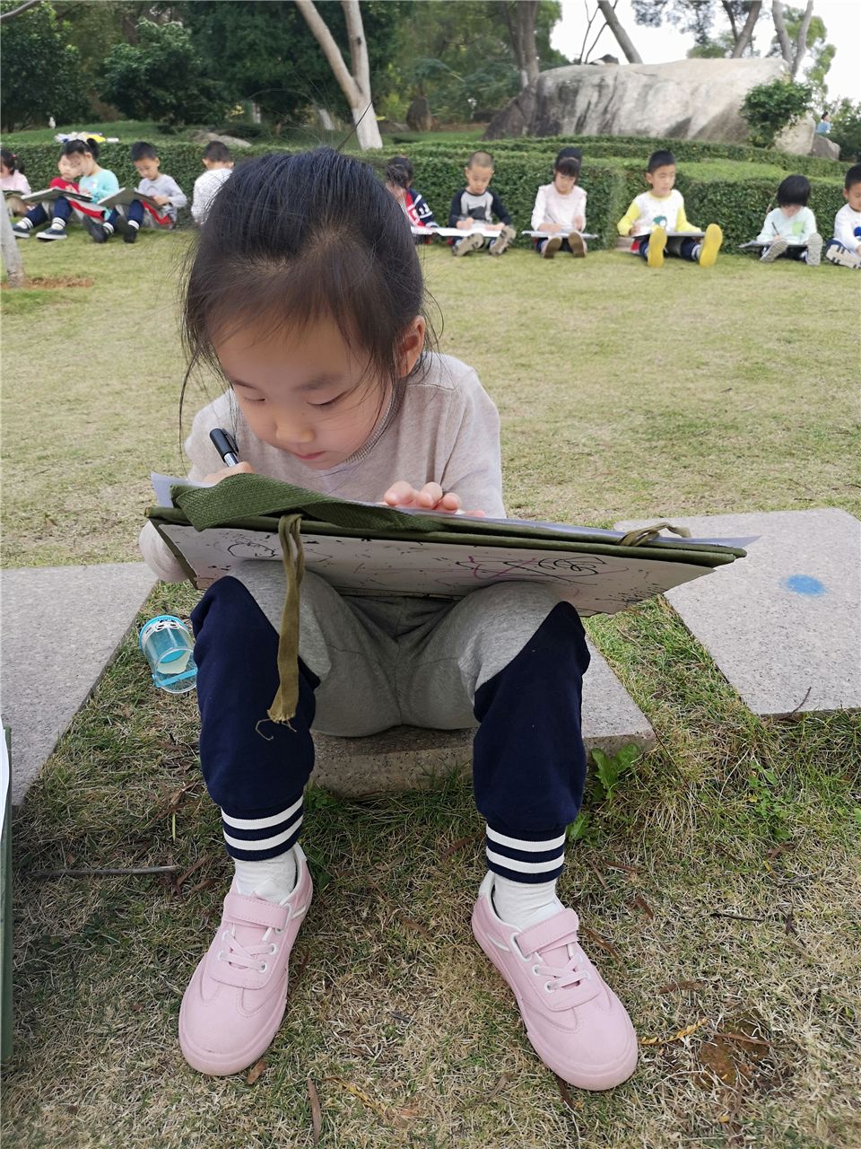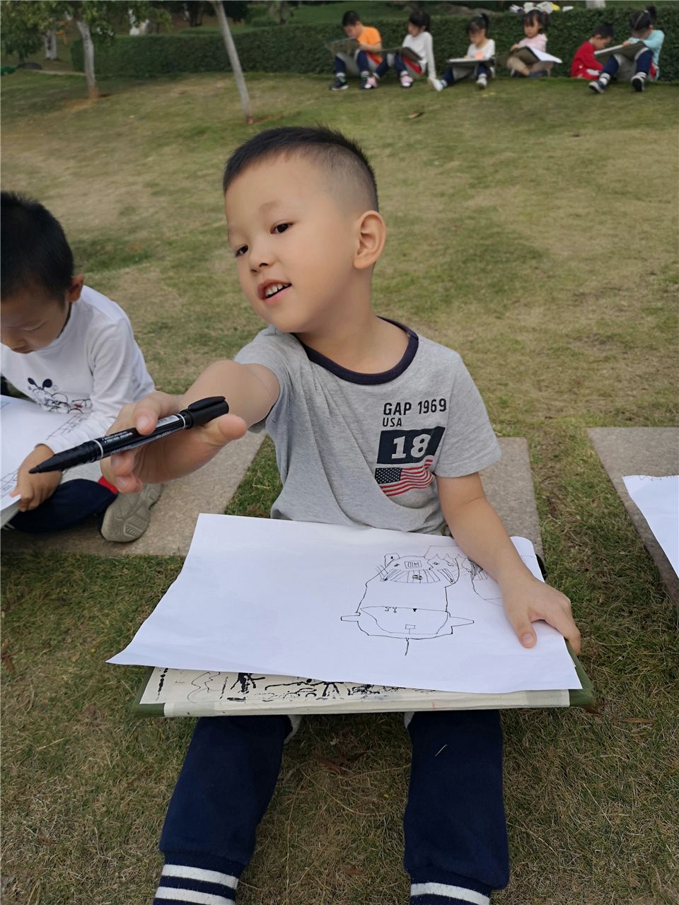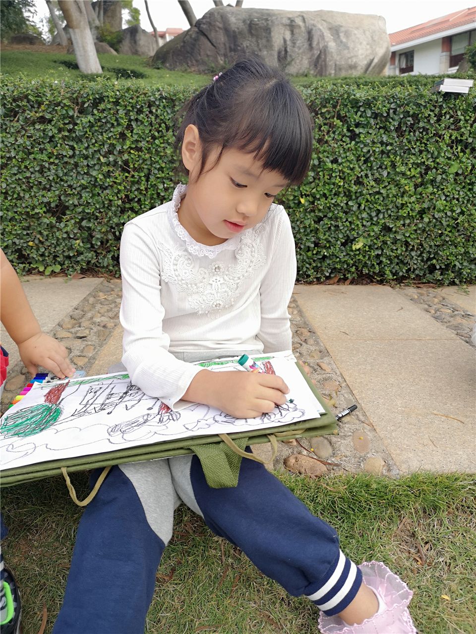在这每天游戏的小山坡写生大四班的萌娃还是头一次呢!按奈不住激动地心情开始三三两两交流等下自己要用画笔记录下来哪一出的美景。