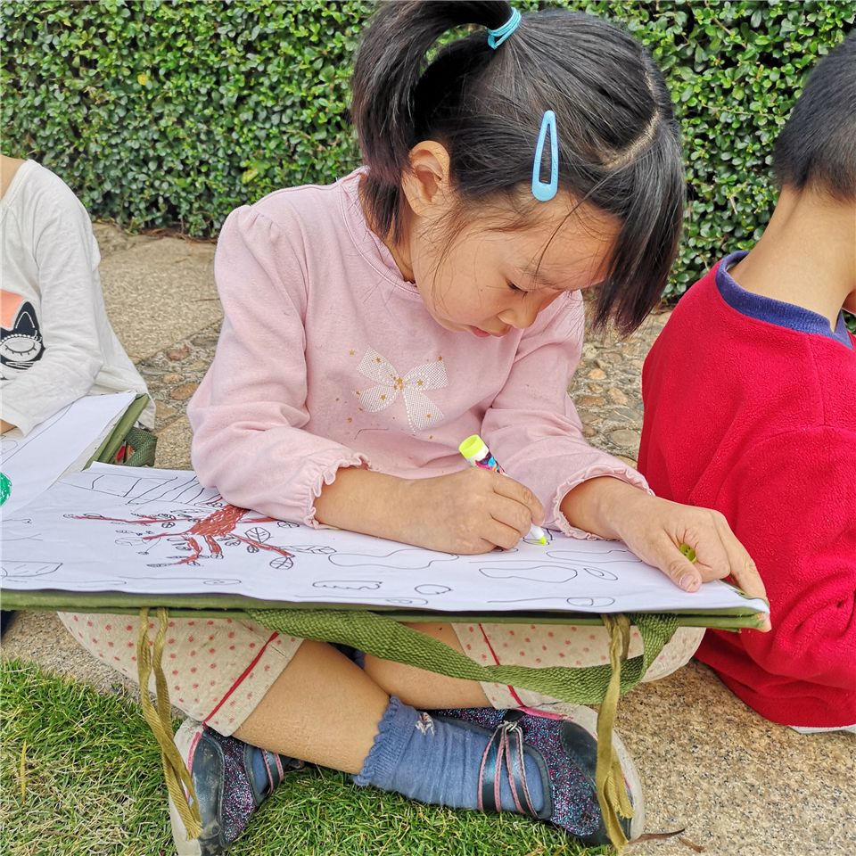 金秋时节,小山坡上还是一如既往的被绿意缠绕,生意盎然。大四班的萌娃迫不及待地背上小画板要去把这诗情画意的小山坡用画笔记录下来。