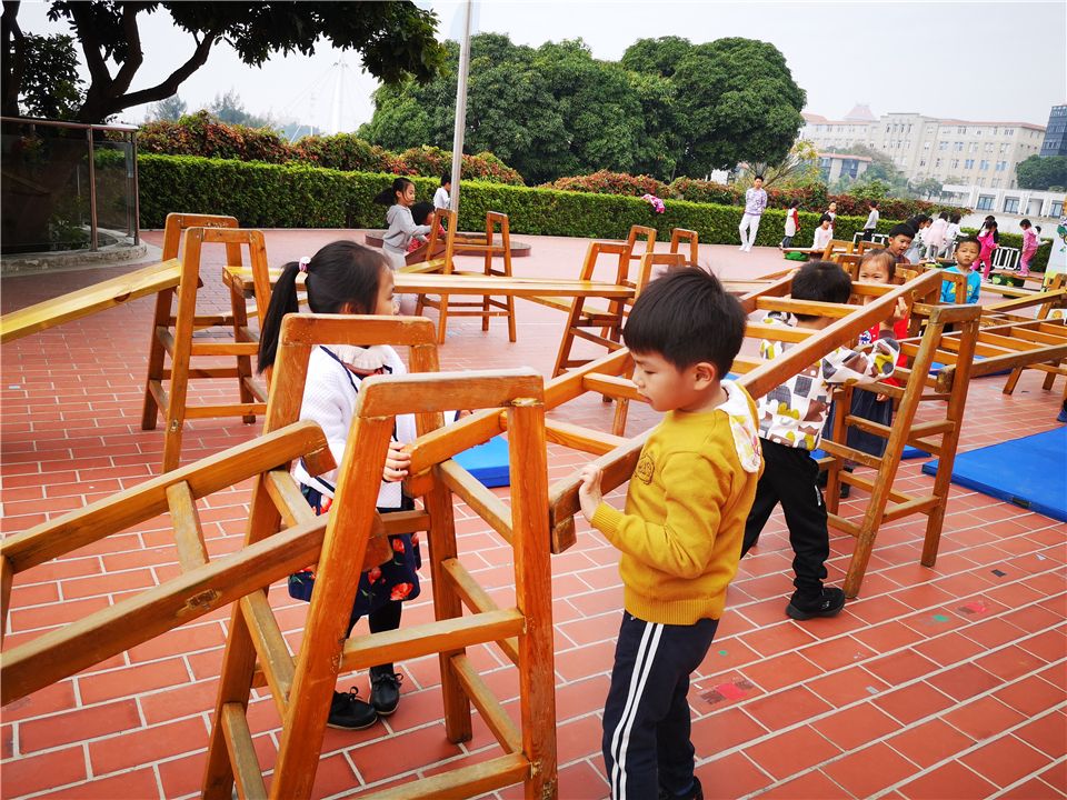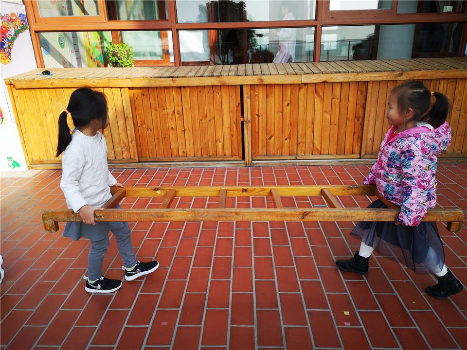 在收器械的过程中,孩子们学会了合作,学会了物归原处,锻炼了肌肉,增强了主人翁意识。小小的安吉木梯,让孩子们从中获益非浅。以后孩子们还会尝试更多关于木梯的游戏活动,未完待续哦~~