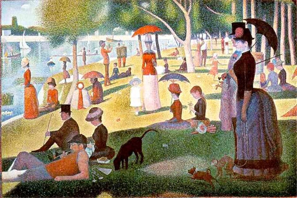 修拉《大碗岛的星期天下午》,在孩子们最爱的颜料蘸印和剪贴中慢慢呈现出来。