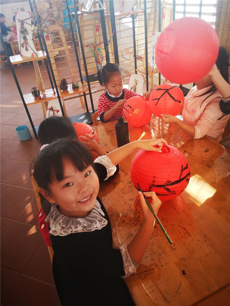 宝贝们在做什么呢?他们在画灯笼。