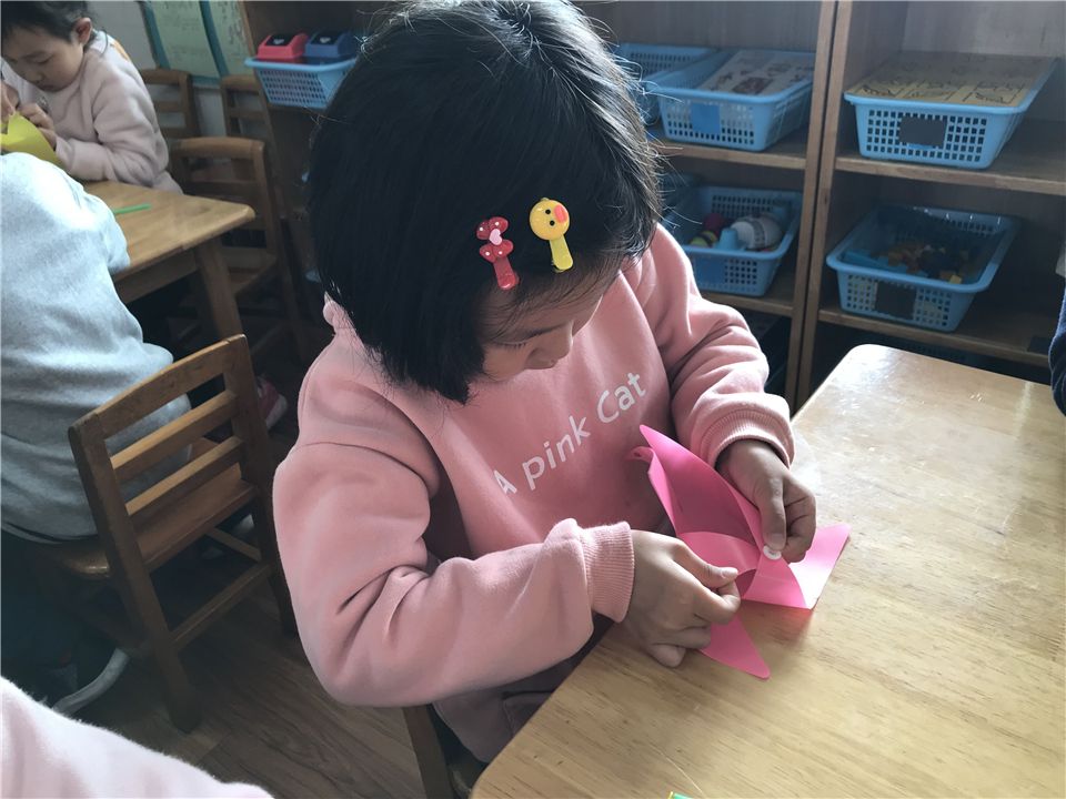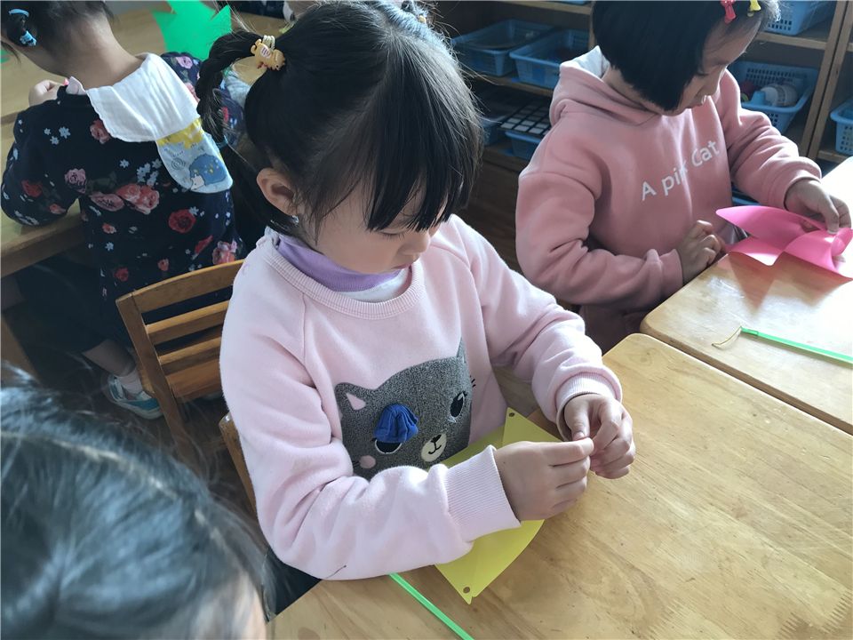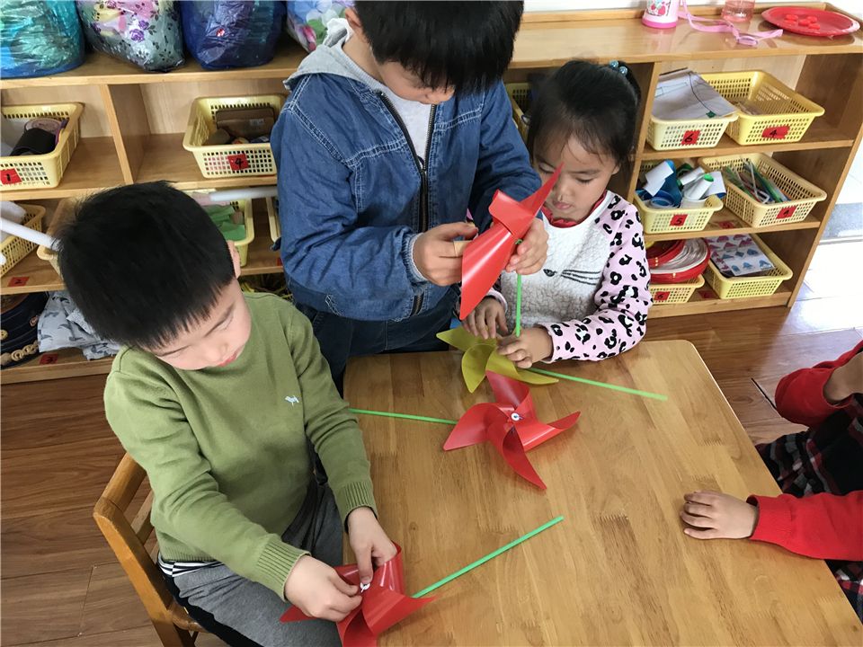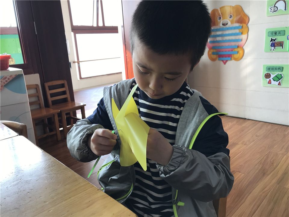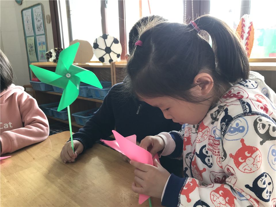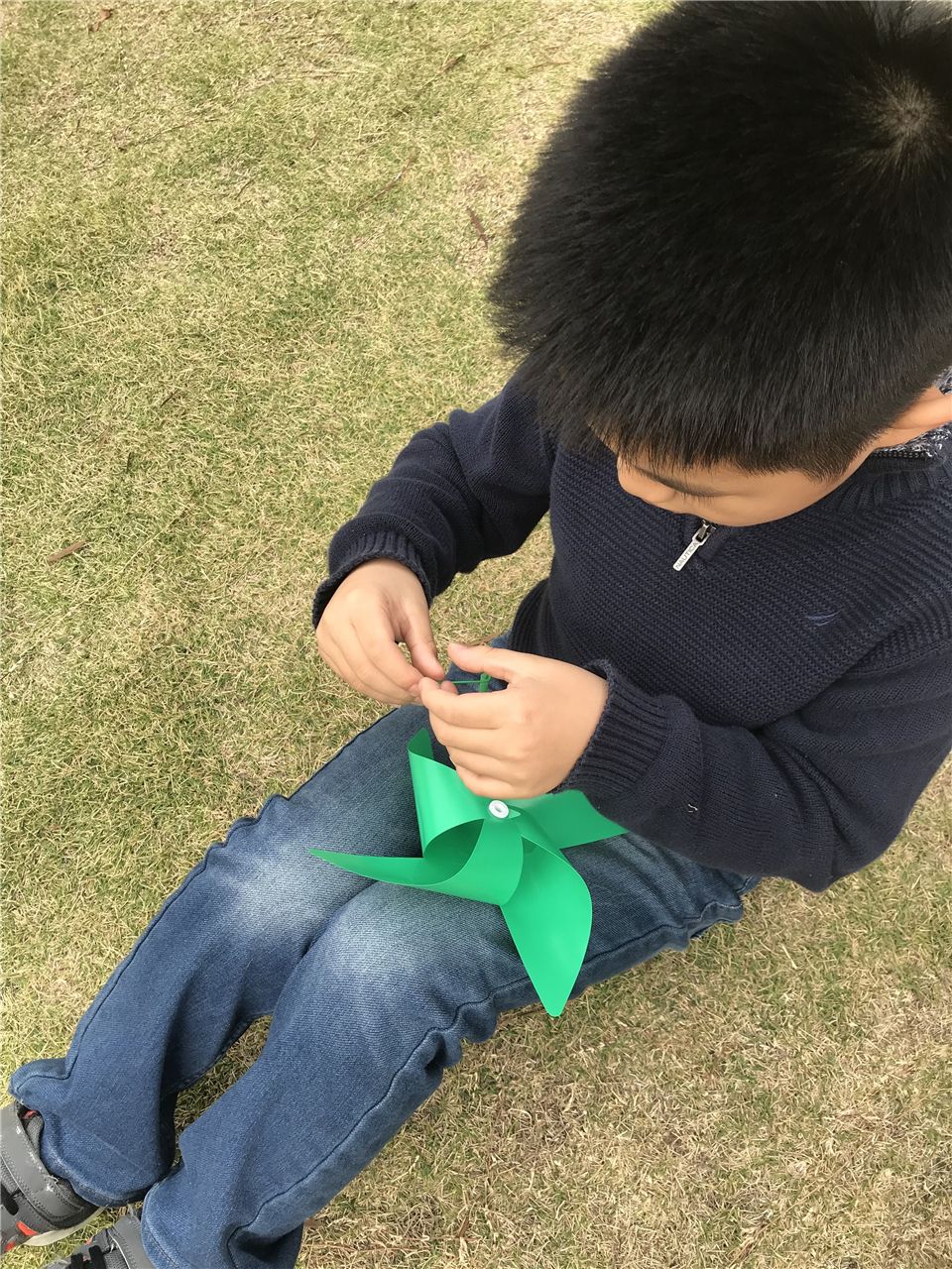 我的小风车小零件掉了,我把它扣进去,就能转了。