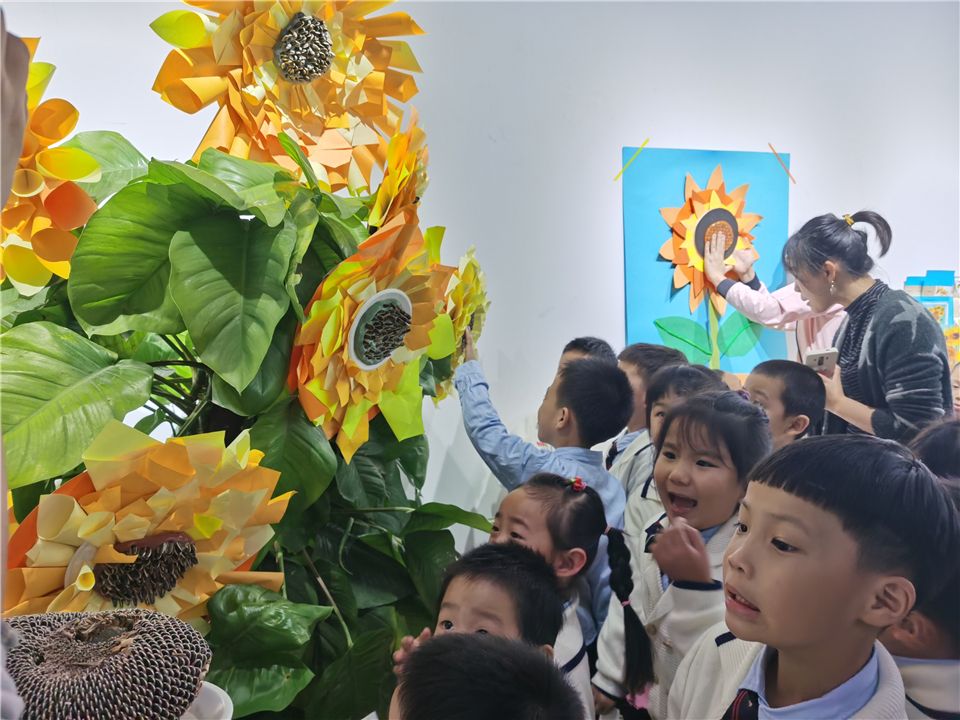梵高著名画作《向日葵》,运用多层折拼贴的技巧,瞧,上面的瓜子可是我们一粒粒地插上去的哦,哈哈,嘴馋的小伙伴你可不能偷吃哦。