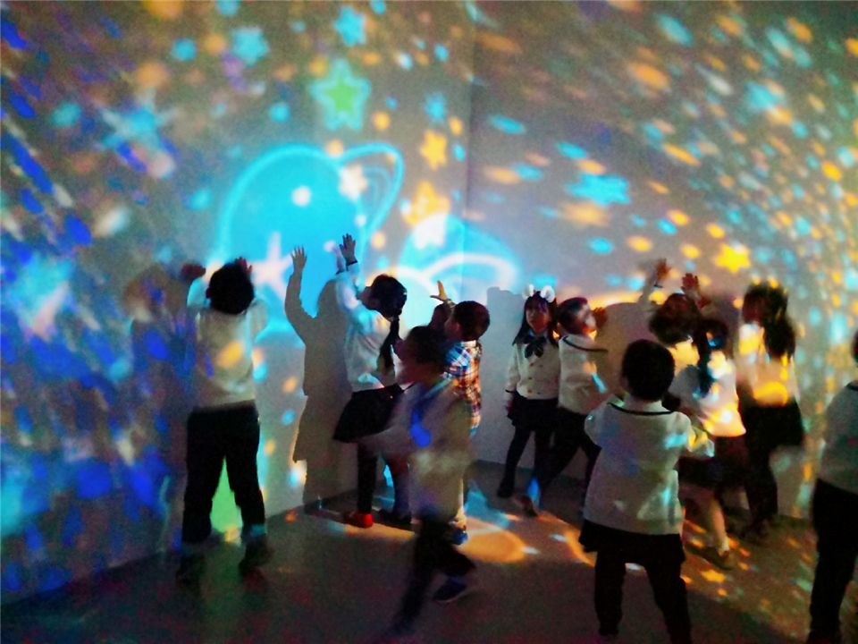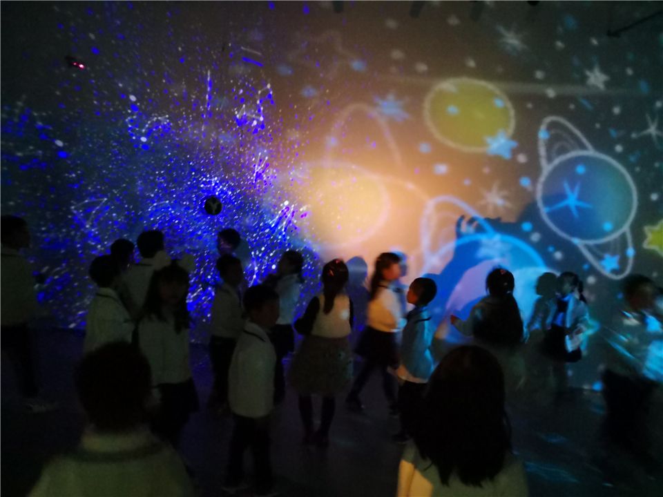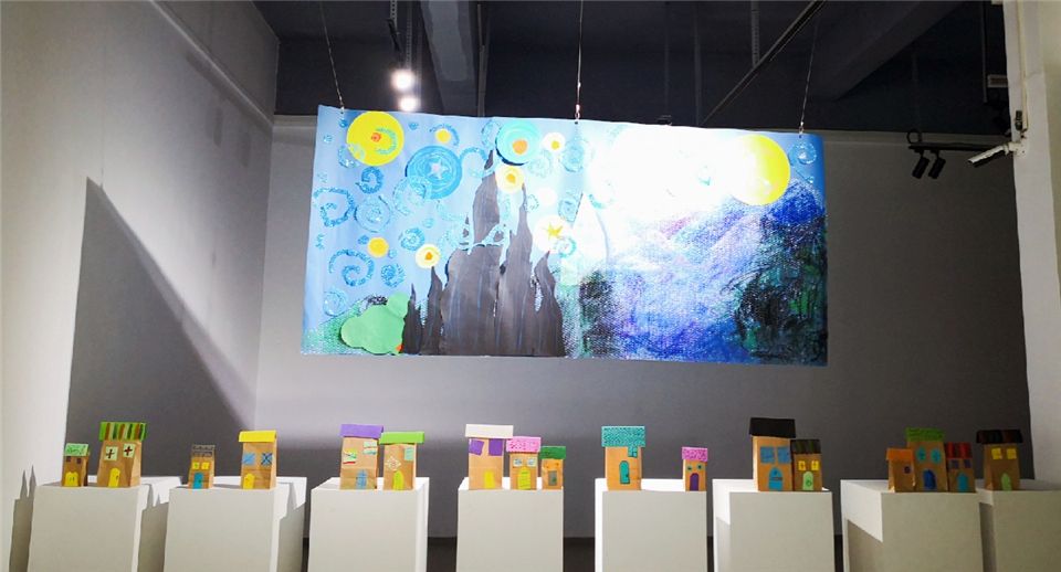 梵高的名作《星空》,仿佛带孩子们走进了梦境一般,轻轻地走进星空区,伸出小手轻轻地碰碰小星星,哇哦,我抓到星星啦!