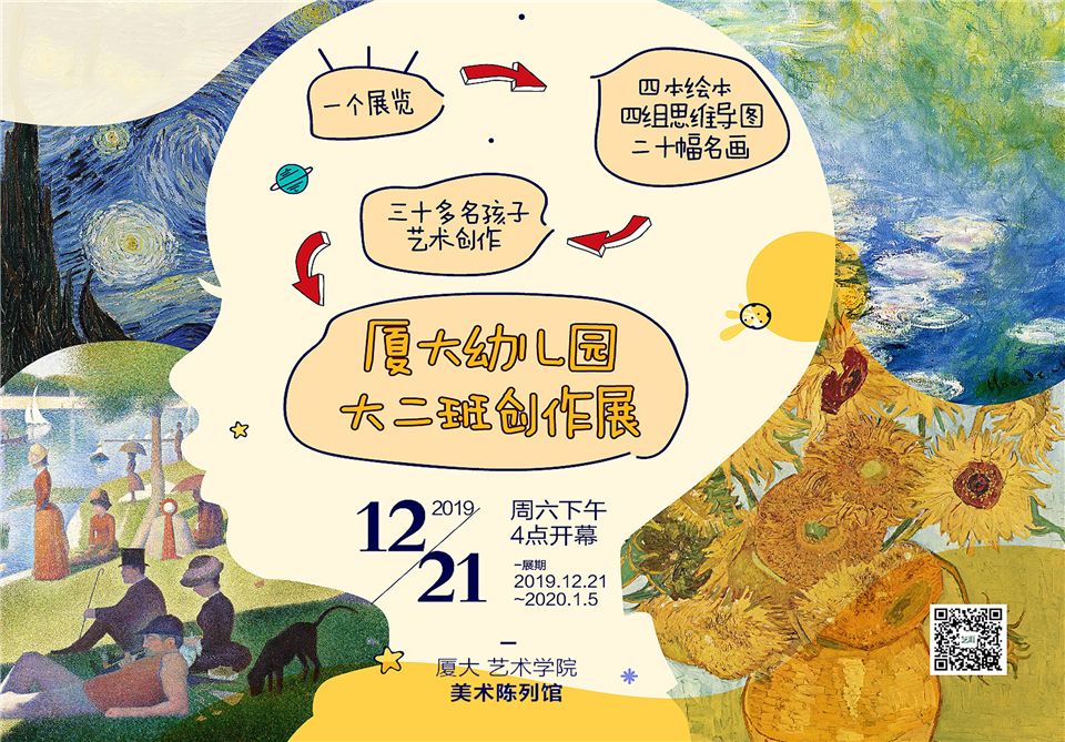 36个可爱的孩子,四本精美的绘本、四次美术馆奇遇记、四组形式活泼的立体思维导图、二十幅世界名画、四场风格各异的艺术创作,将艺术和绘本、绘本和孩子、孩子和艺术紧紧联系在一起。伙伴们,快来厦大艺术学院美术陈列馆,了解孩子眼中的艺术吧。