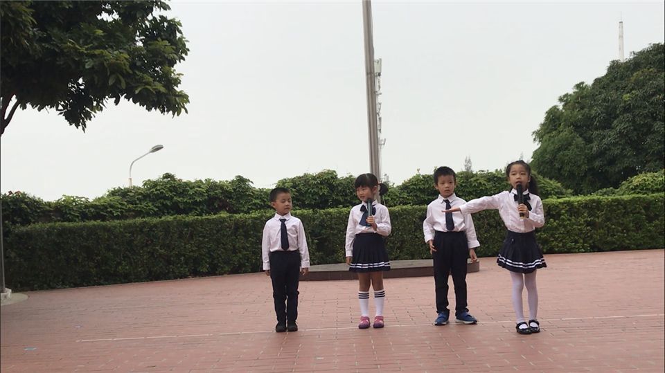 到了今天升旗仪式的高潮环节啦!有请大七班小朋友为我们表演节目《悯农》!