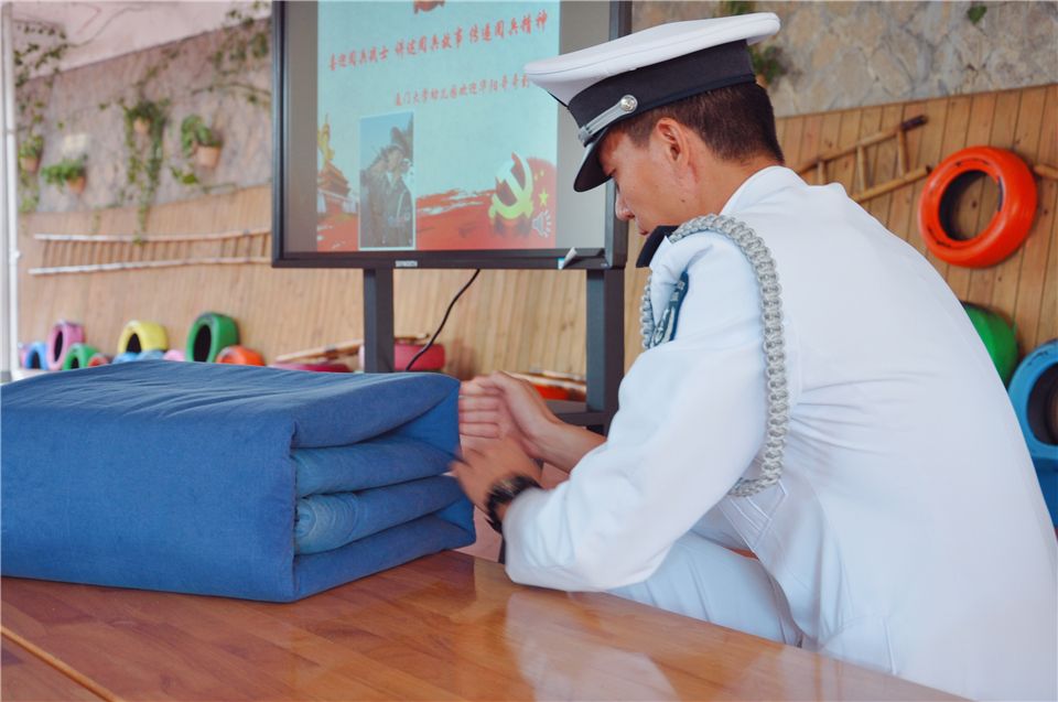军营里的“豆腐块”名声在外,今天孩子们可是一饱眼福了。一床平整的被子怎么变成豆腐块原来是有技巧的,整理是最关键的!看着华阳哥哥一步一步地把被子变成豆腐块孩子们响起了热烈的掌声。