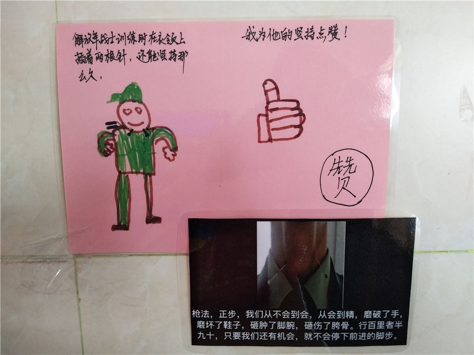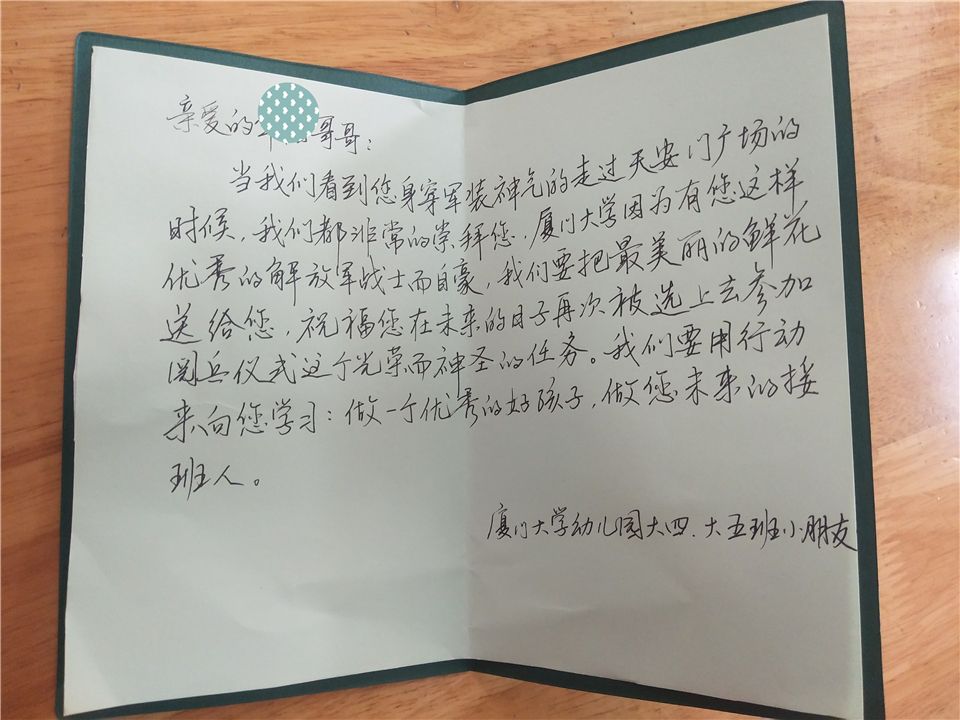 老师把孩子们想对解放军战士说的话都整理到这贺卡上。