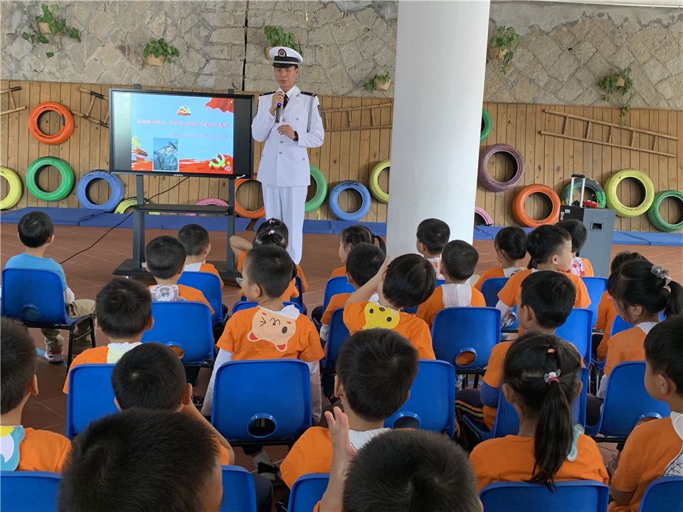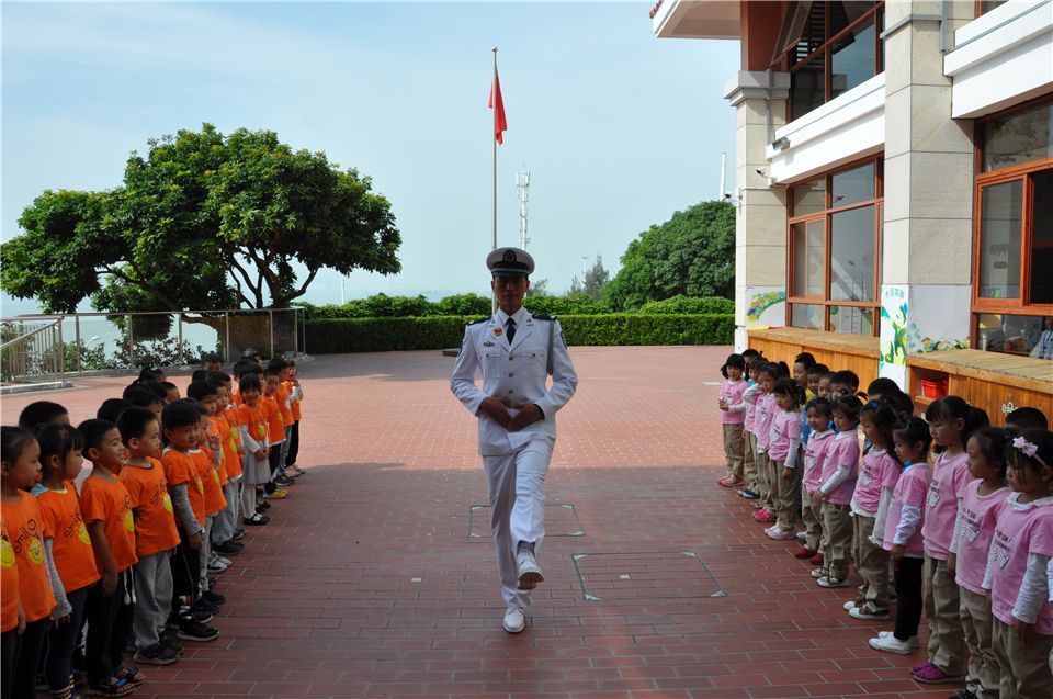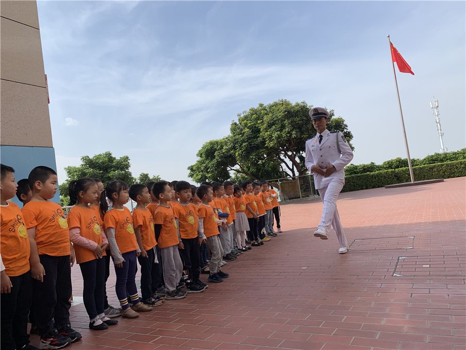 激动人心的时刻到来了,华阳哥哥准备在大操场上表演正步走,看着华阳哥哥那标准帅气的军姿孩子们肃然起敬,小眼神流露的尽是崇拜与敬佩,一个个也不由得抬起脚默默地学着。
