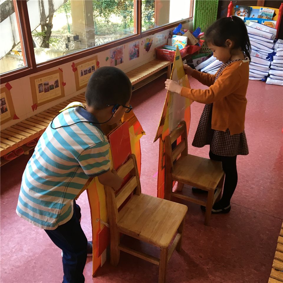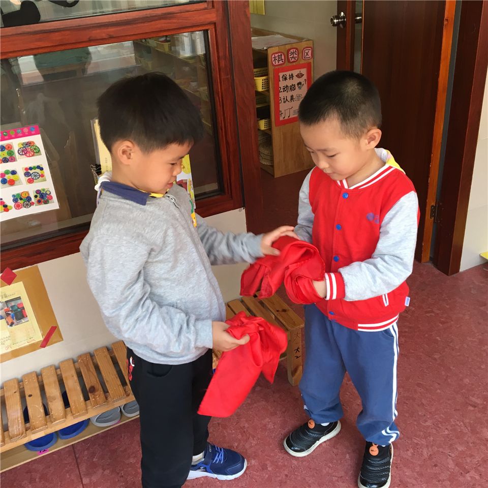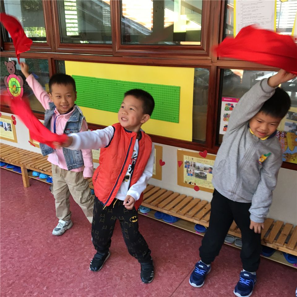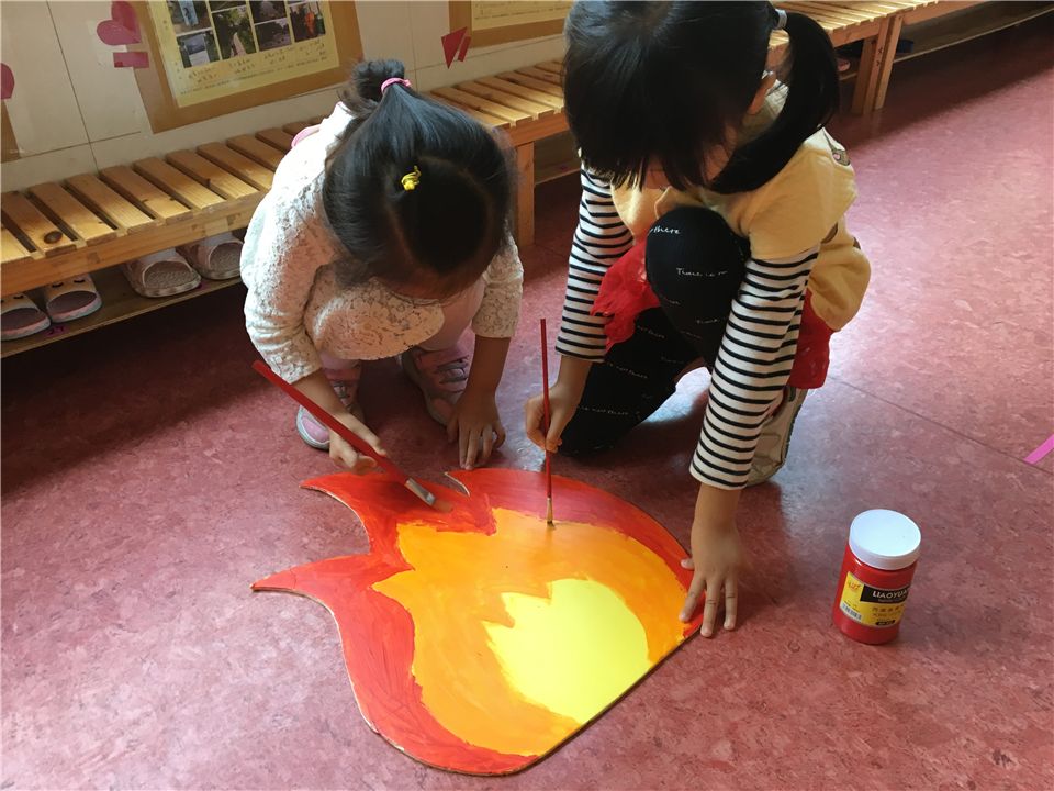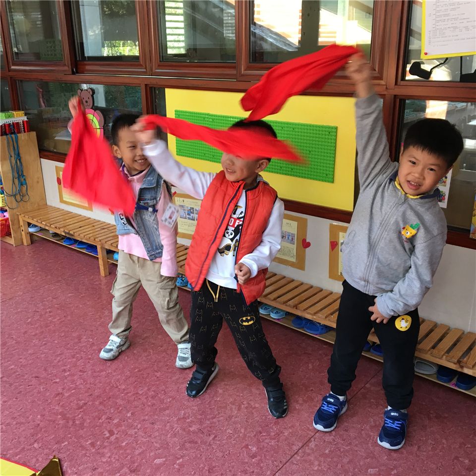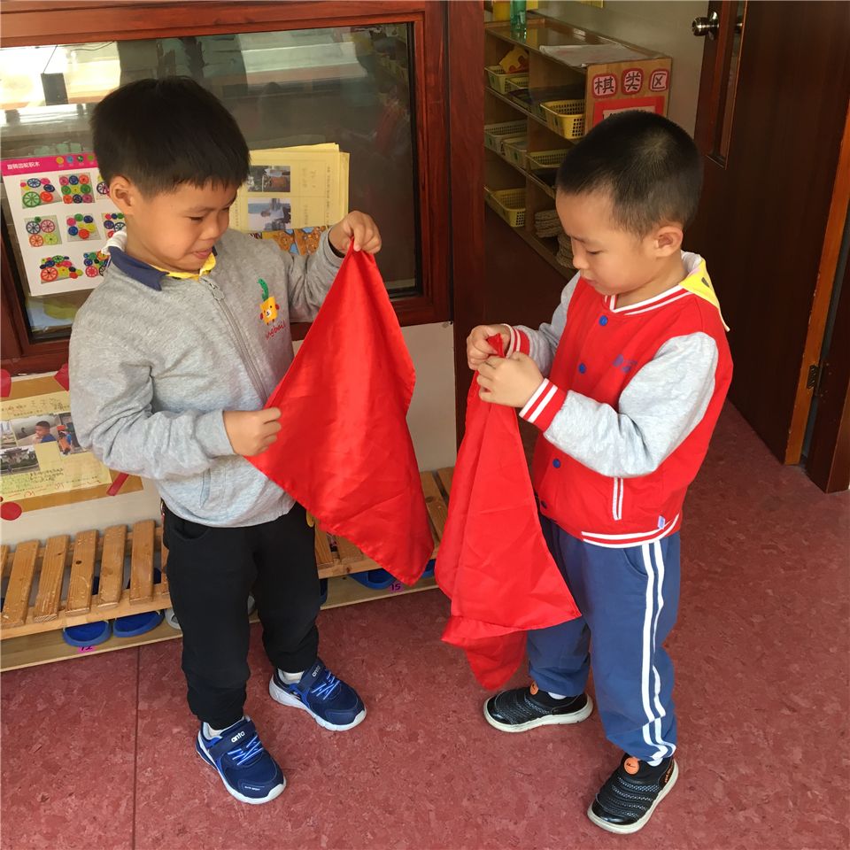 我们还需要一些模拟着火时的小火苗,用什么材料好呢?经过探索,我们选出了最适合的材料——红色方巾。