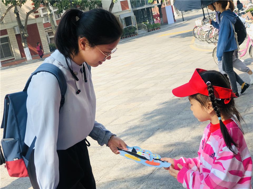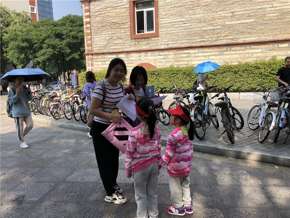 垃圾分类推广小天使们在老师的带领下,来到厦大校园,准备向来往的大学生及路人游客发放宣传垃圾分类的小知识。