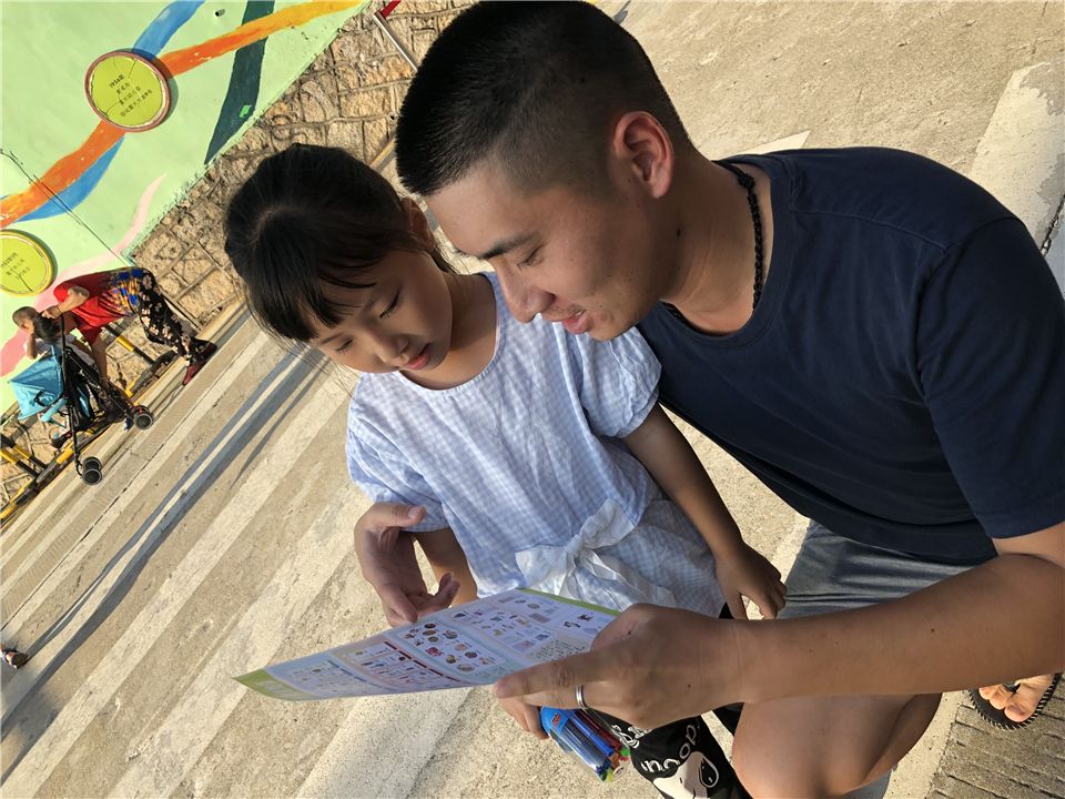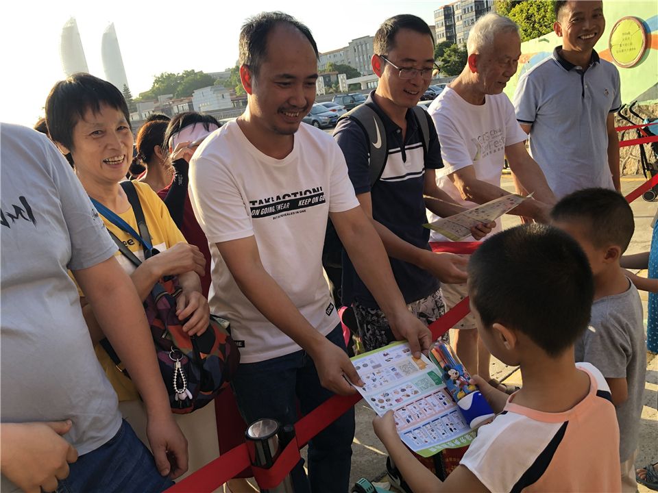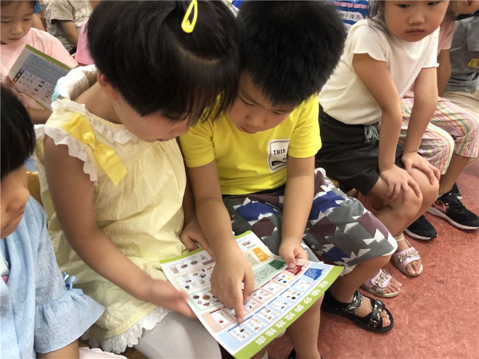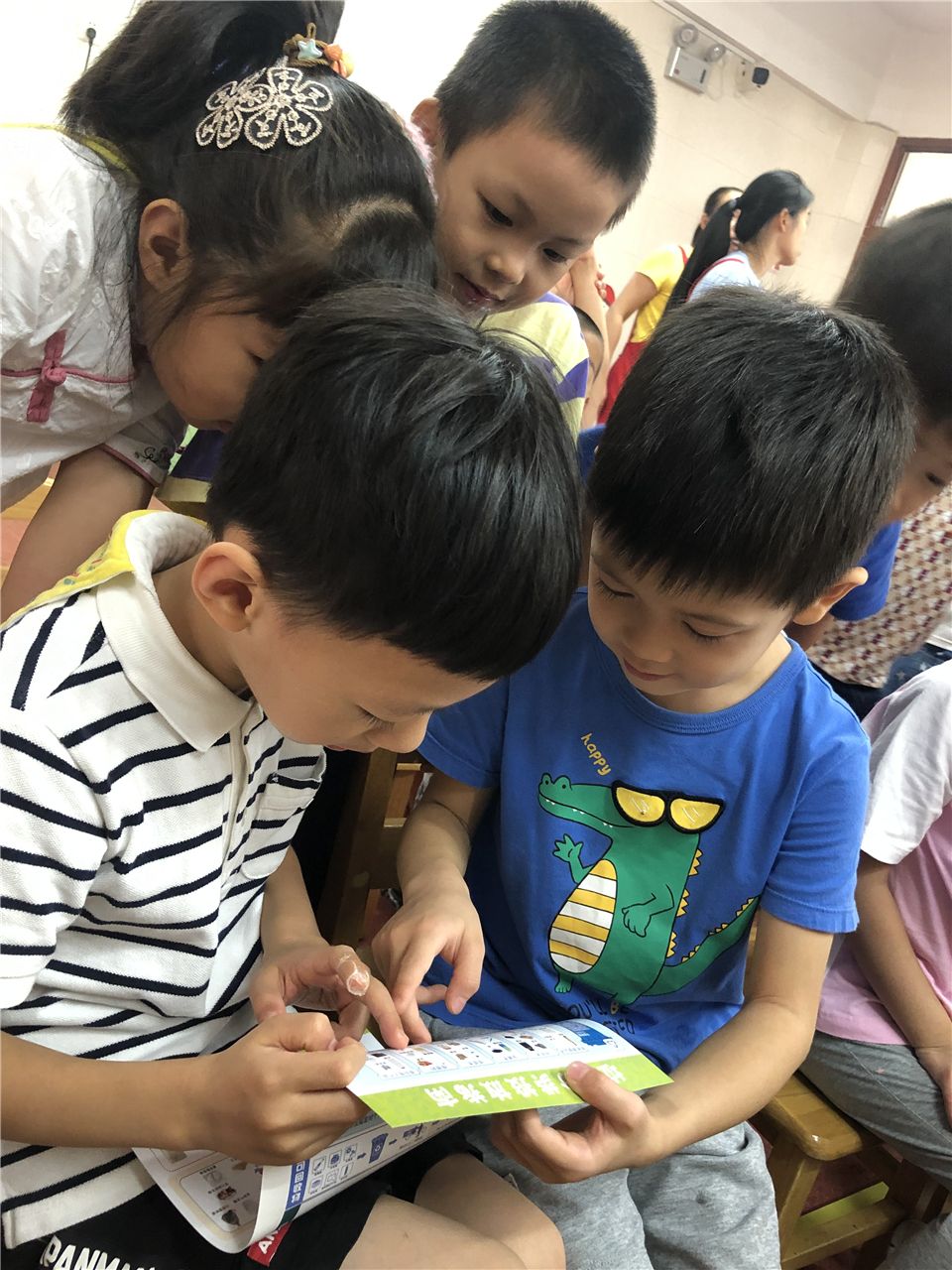 随后叔叔阿姨还给小朋友们发放浅显易懂的宣传单,让小朋友更深入了解垃圾分类的知识。瞧!小朋友们学习宣传页多么认真,要给他们点个赞吧!