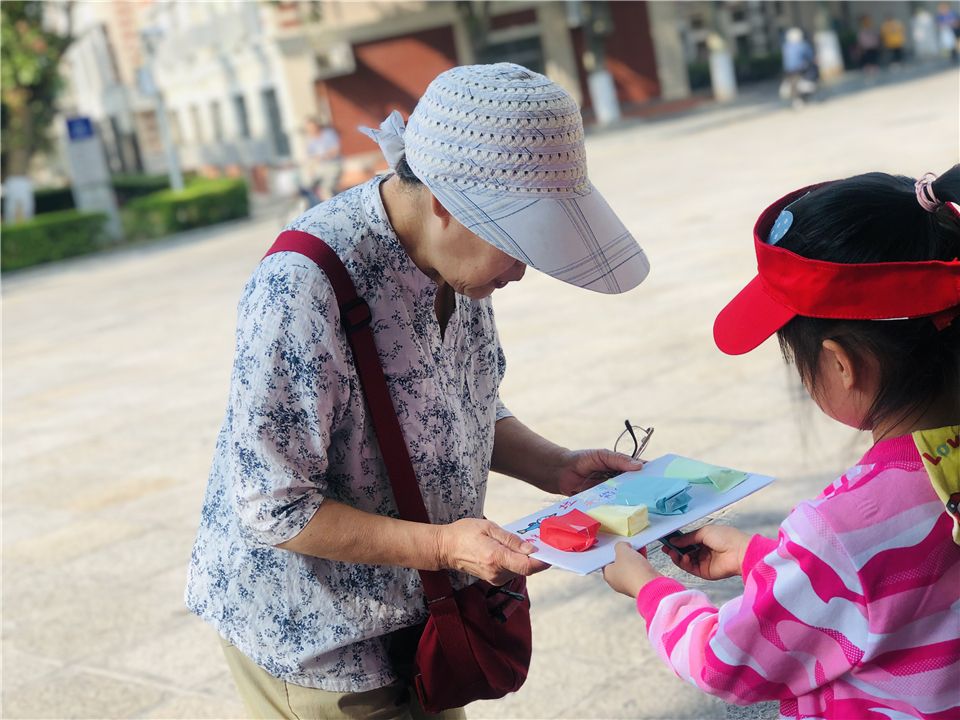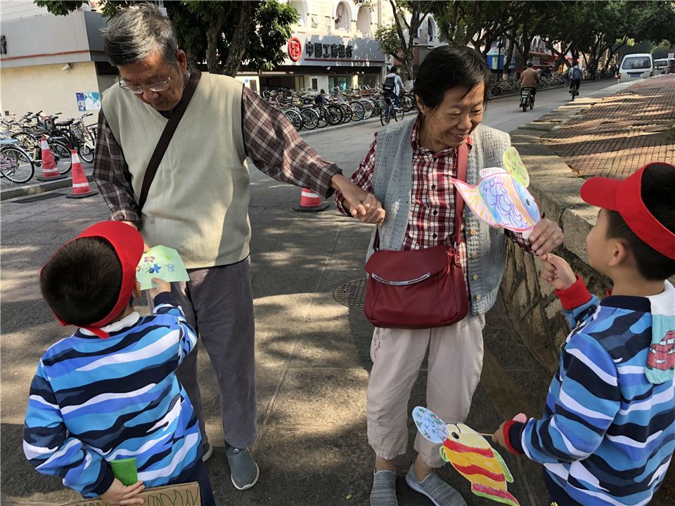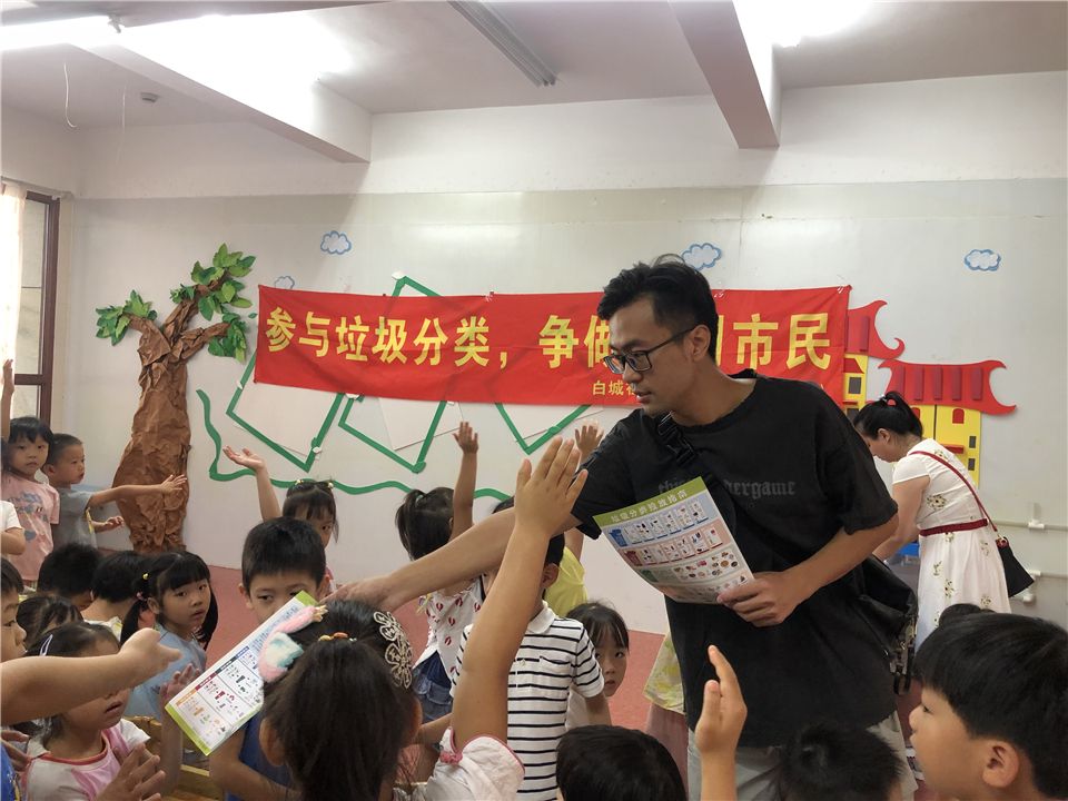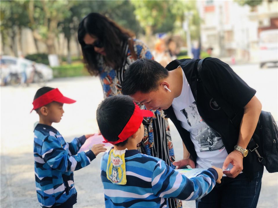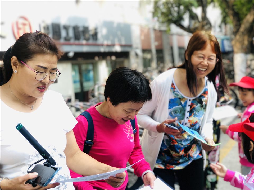 “婆婆,请你做好垃圾分类”、“爷爷,请你把家里的垃圾进行分类”,推广小天使一边温馨提示一边发放宣传单,将垃圾分类的意识传递给周边更多的人。