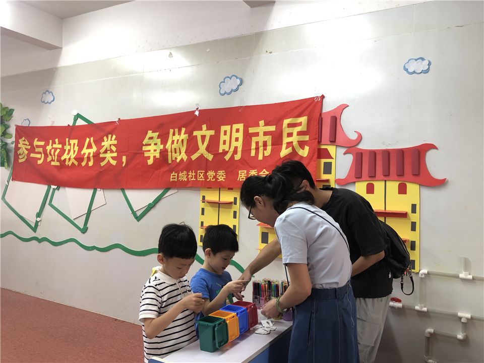 叔叔阿姨为大家讲解垃圾分类的相关知识,小朋友们兴致勃勃的聆听着。“什么样的垃圾应该放进蓝色垃圾桶呢?”“电池应该放进哪个垃圾桶?”大家你一言我一语激烈的讨论着。接着叔叔阿姨又为小朋友们设计了分类游戏,小朋友们争先恐后分类投放手中垃圾卡片,害怕把“垃圾宝宝惹哭了”,哈哈,可有趣了 !