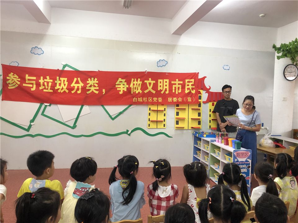 白城社区的叔叔阿姨们来到我们班级,跟小朋友们开展了一堂生动有趣的《参与垃圾分类,争做文明市民》为主题的生动有趣环保活动,小朋友们可高兴啦!
