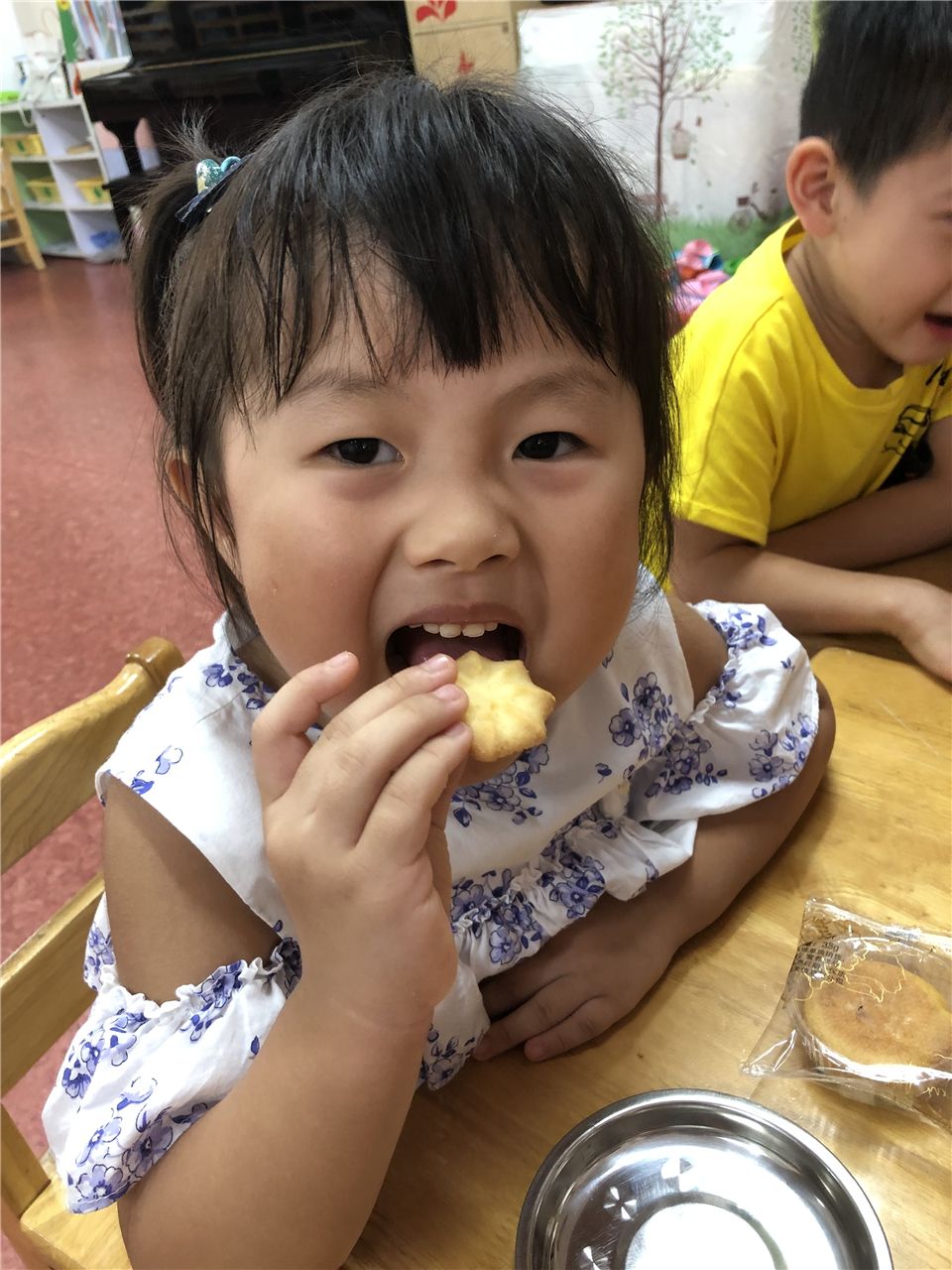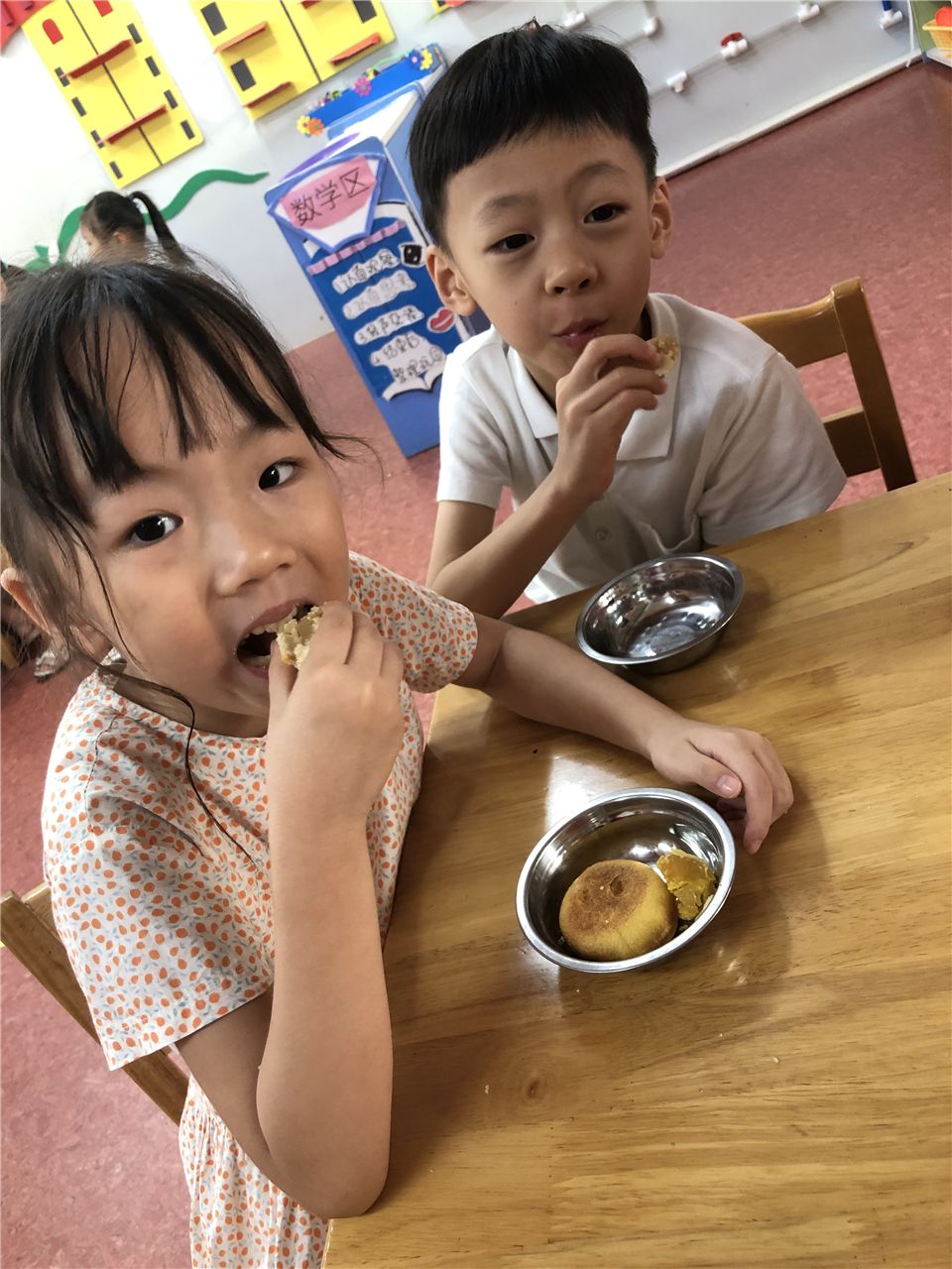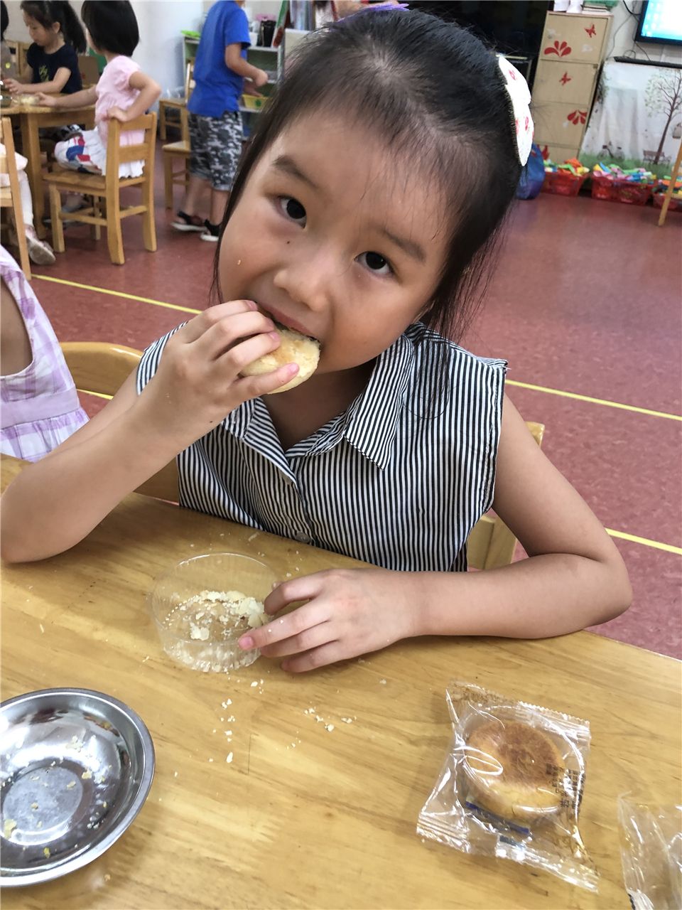 最高潮的环节就是品尝又香又圆的月饼了!小朋友们兴奋极了,也不忘好吃的东西一起分享,大家其乐融融,开心极了!