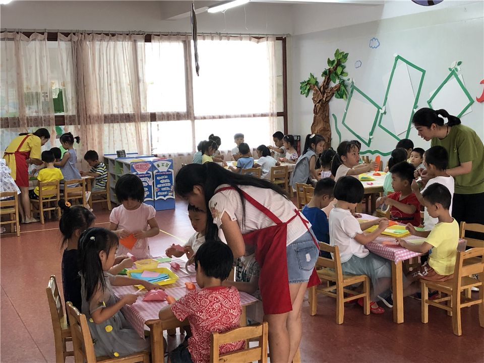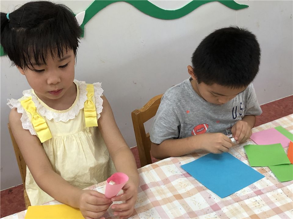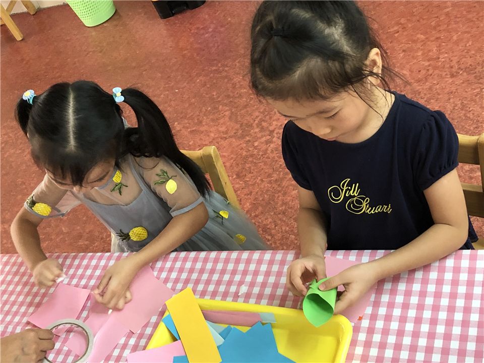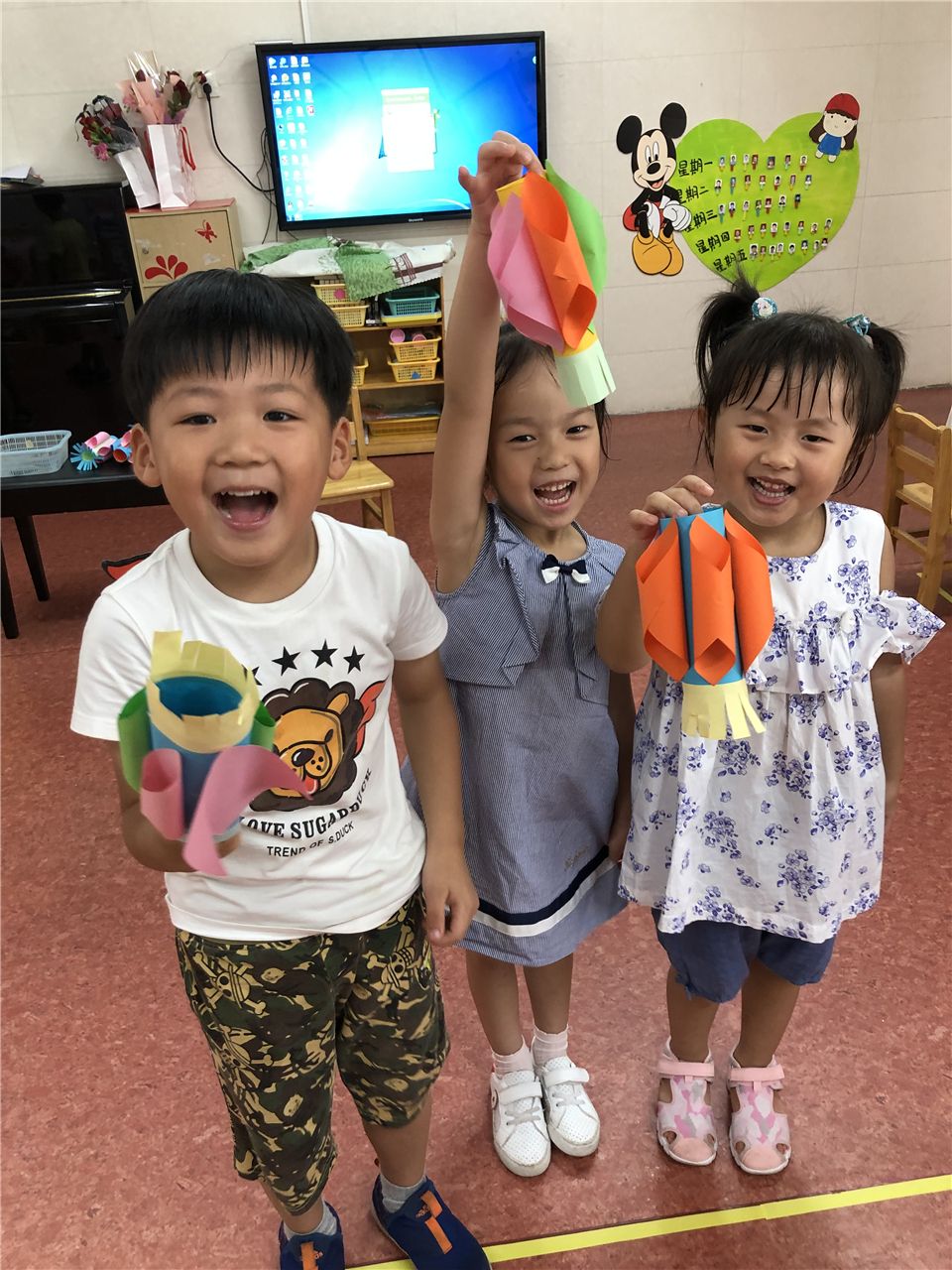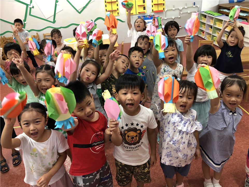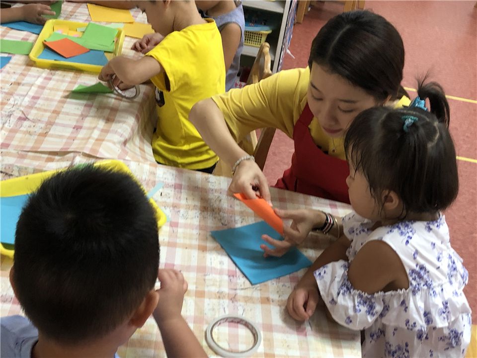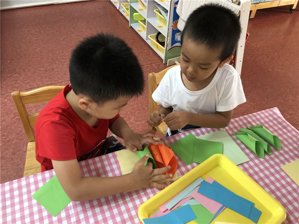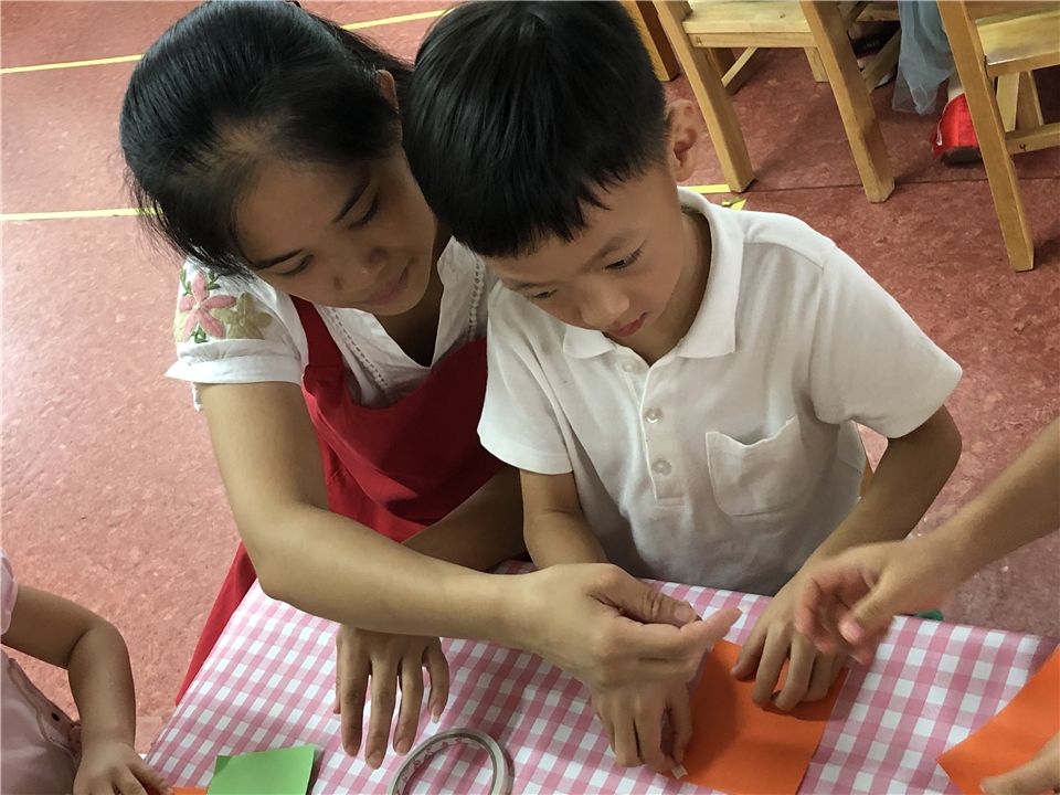 小朋友们齐动手,你帮我来我帮你,一起分工合作。剪、撕、粘、折等技能样样俱全,小朋友们几乎样样掌握棒极了!教室里可热闹了,大家沉浸在过节的喜悦氛围中。