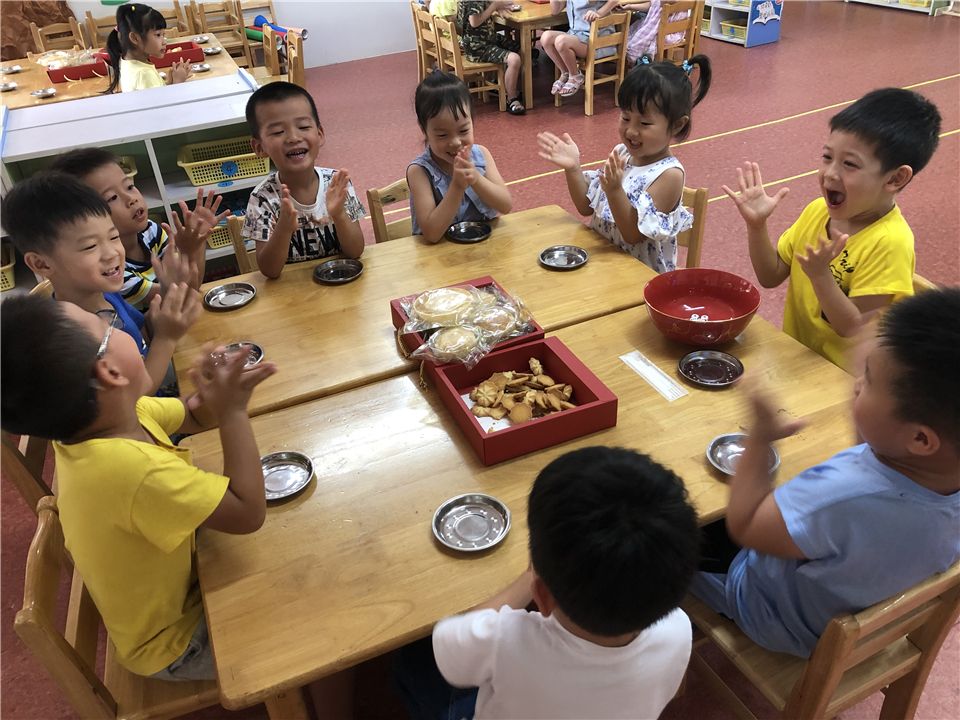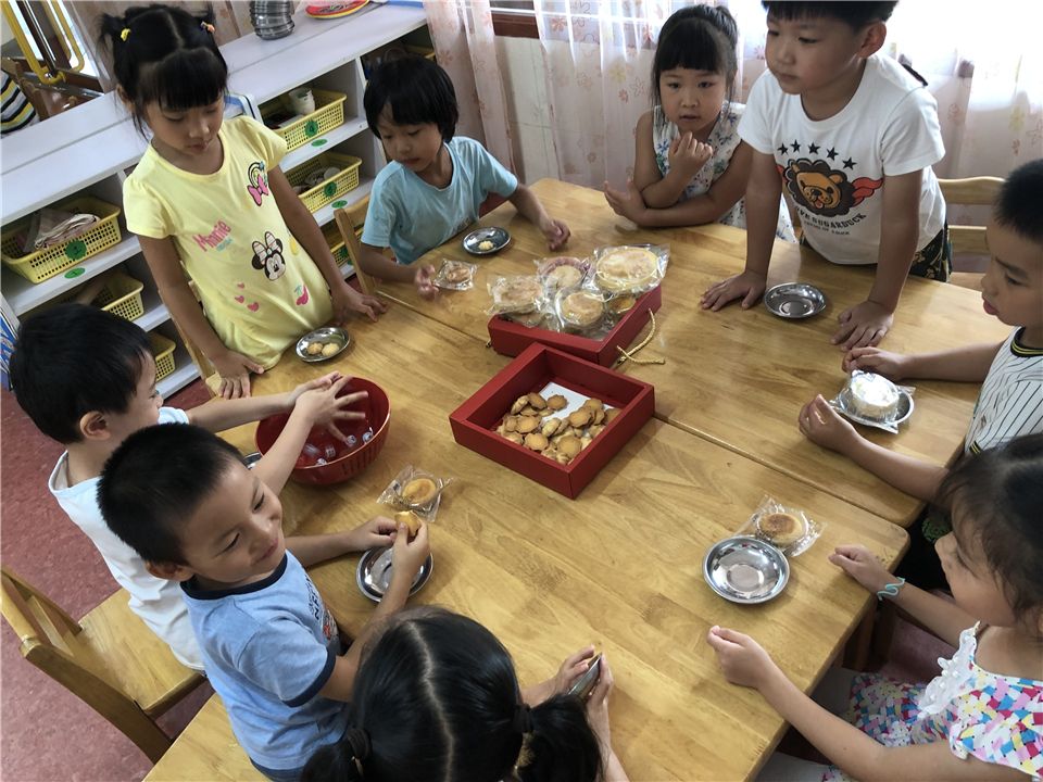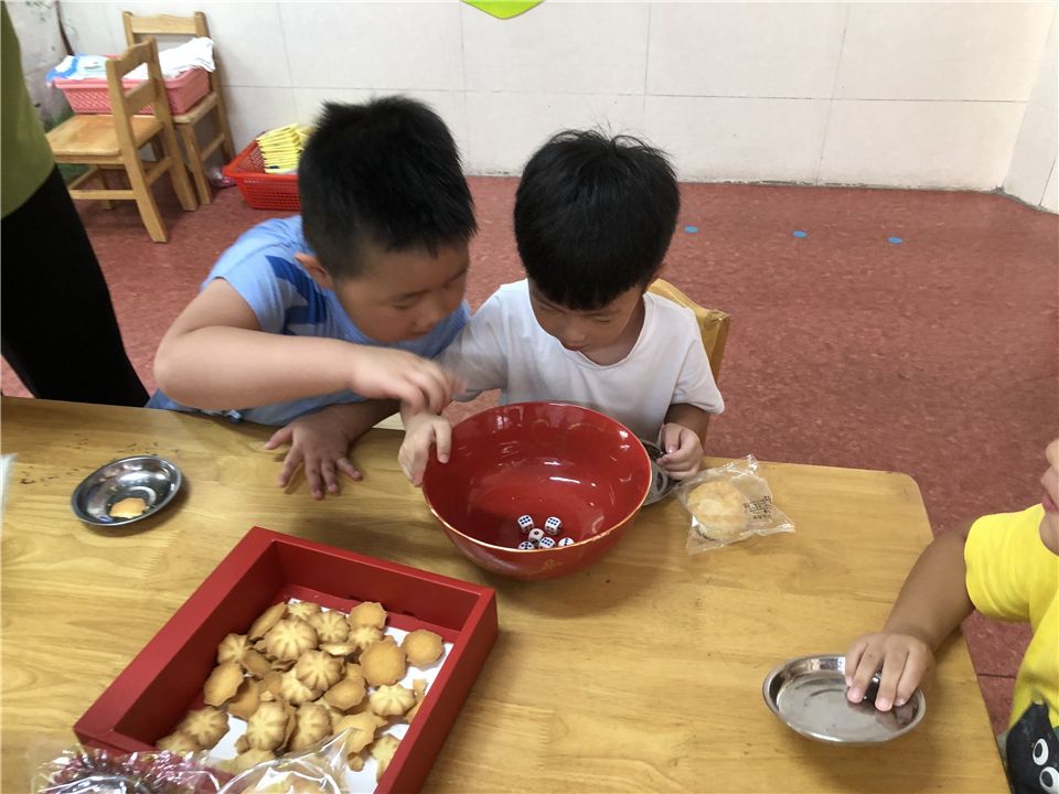 为了让小朋友们了解厦门中秋节的传统文化,知晓中秋节的习俗趣事,老师还为我们准备了有趣的“博饼”活动,又大又圆香气有点扑鼻品种多多的月饼立刻吸引了小朋友们。看着香喷喷的月饼,大家都垂涎三尺迫不及待咯!