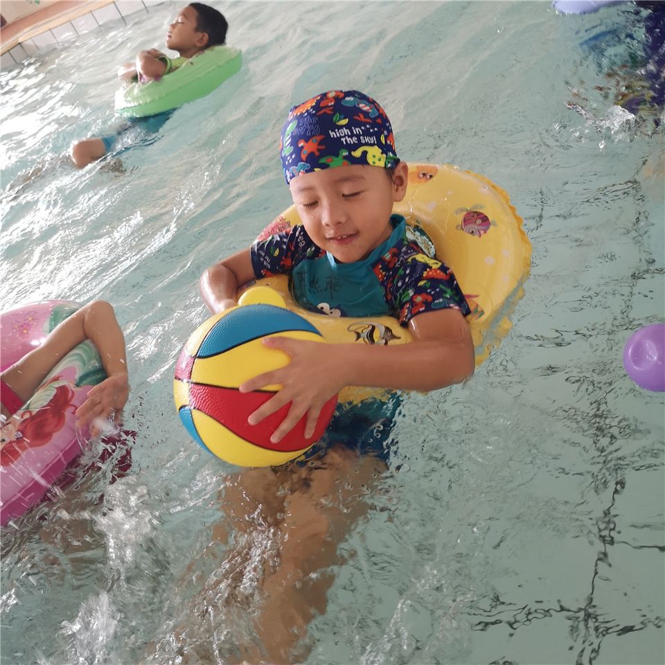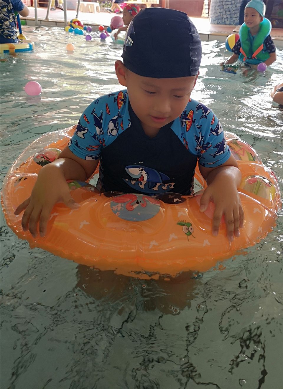 除了自由自在游泳的小宝贝们,还有一些还不太敢下水的宝贝。有的紧紧抓住游泳池边的边沿希望得到老师的帮助,有的抱紧自己的游泳圈害怕沉到水里。这些都没有关系,与水宝宝成为好朋友还需要时间的积累。从不会到会,不断学习是宝贝们成长的必经之路。