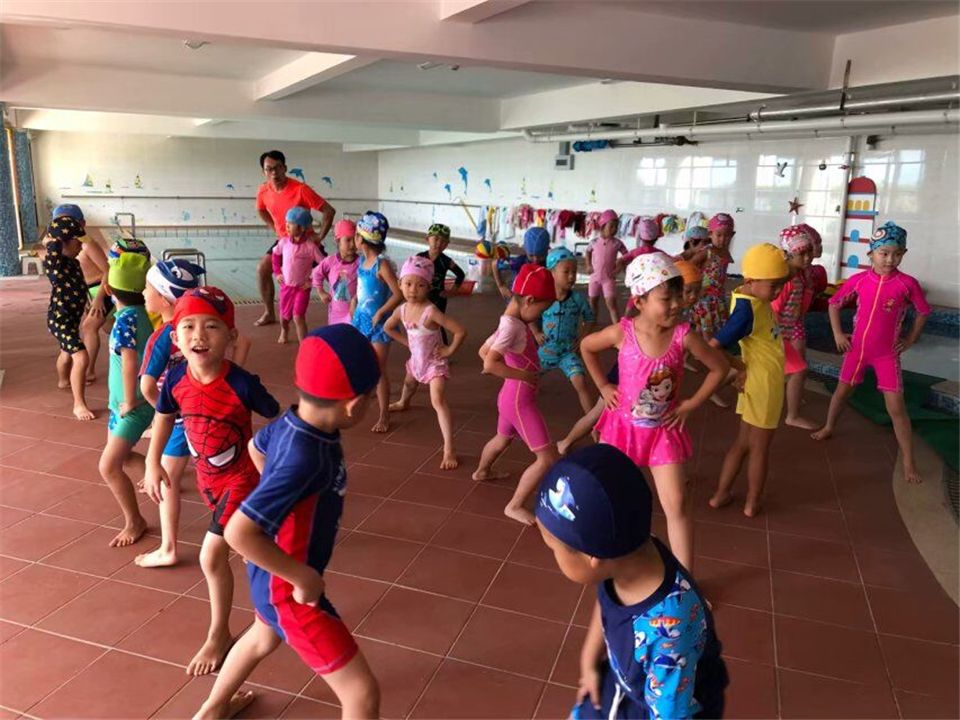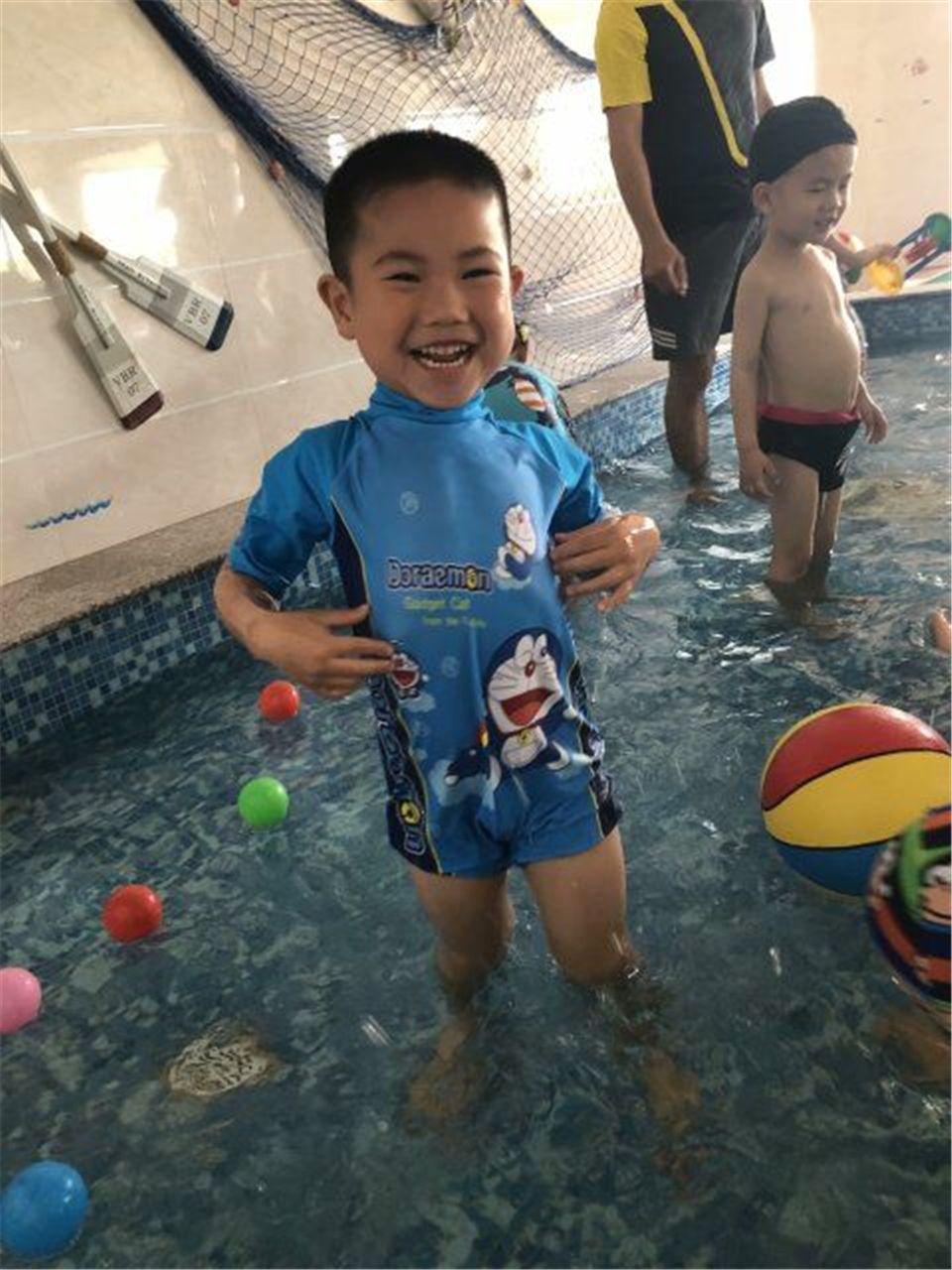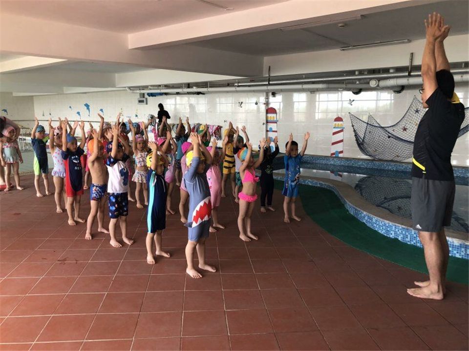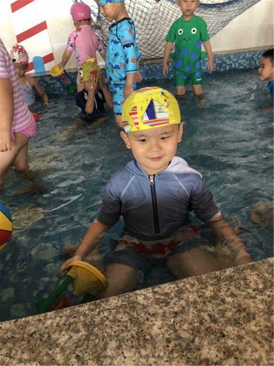 一眨眼,我们都已经成为大班的小朋友了,我们长高了,以前的泳装都穿不下了,换了大大的泳池。我们不再对水感到陌生,它是我们的朋友,在水里我们就像一条自由自在的小鱼......