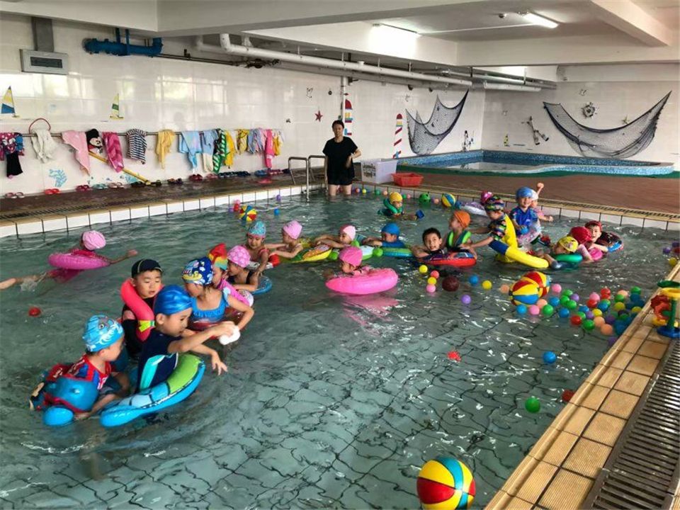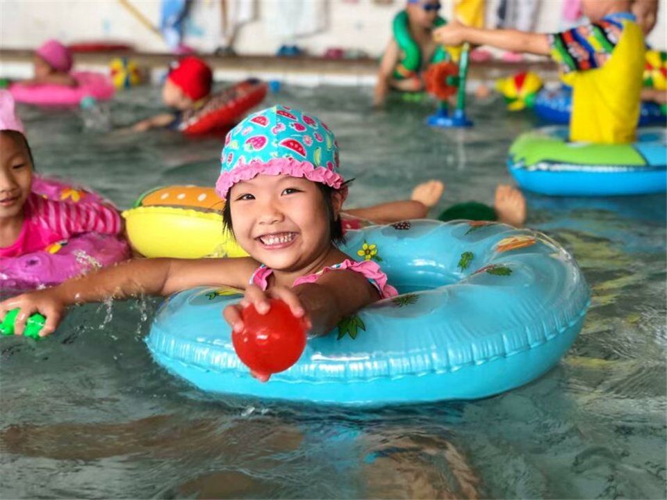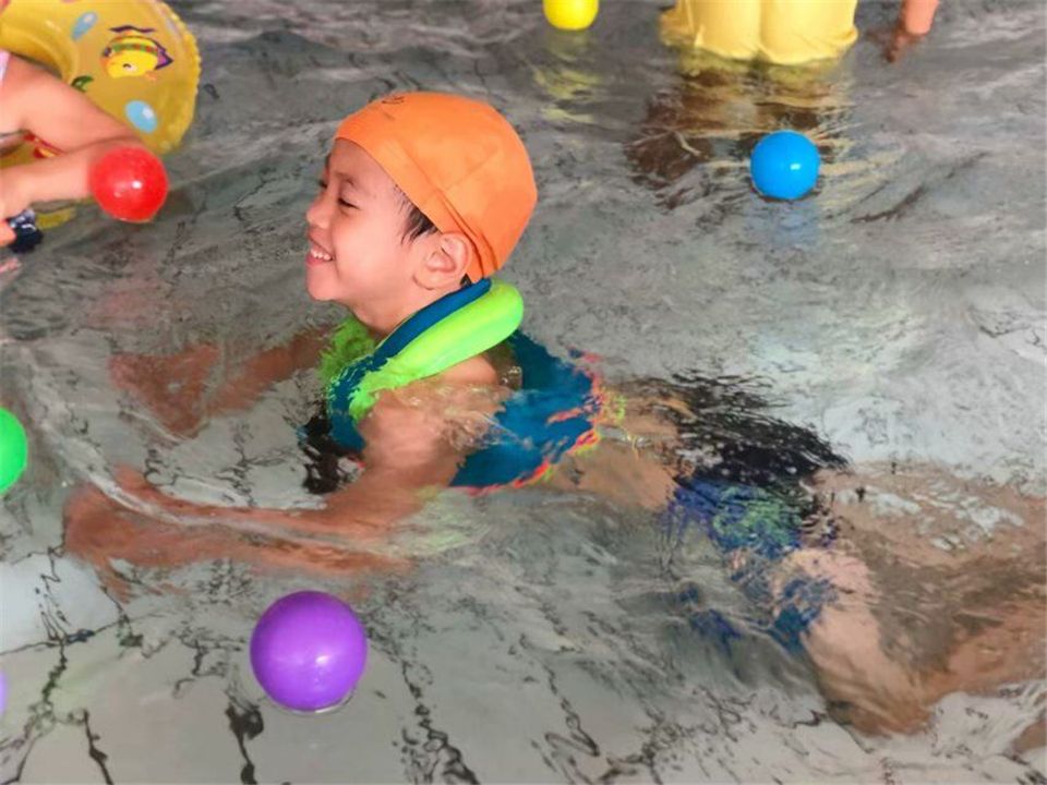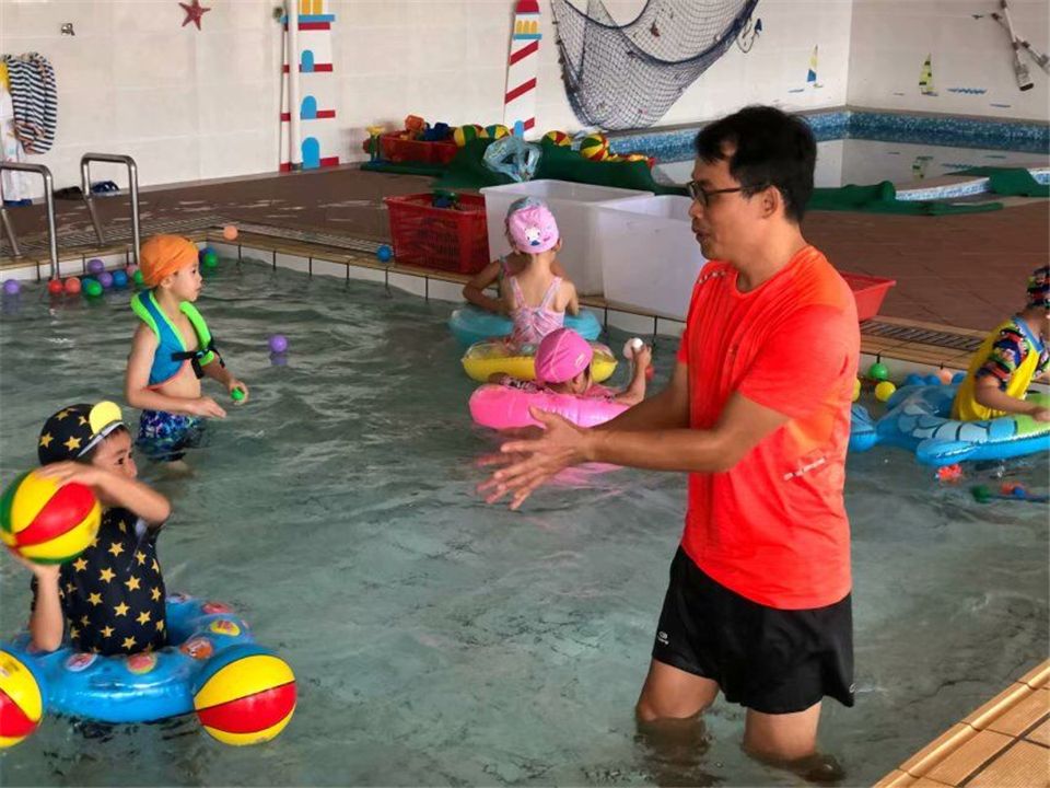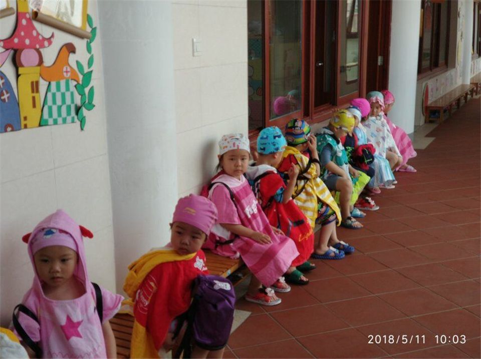一眨眼,我们都已经成为大班的小朋友了,我们长高了,以前的泳装都穿不下了,换了大大的泳池。我们不再对水感到陌生,它是我们的朋友,在水里我们就像一条自由自在的小鱼......