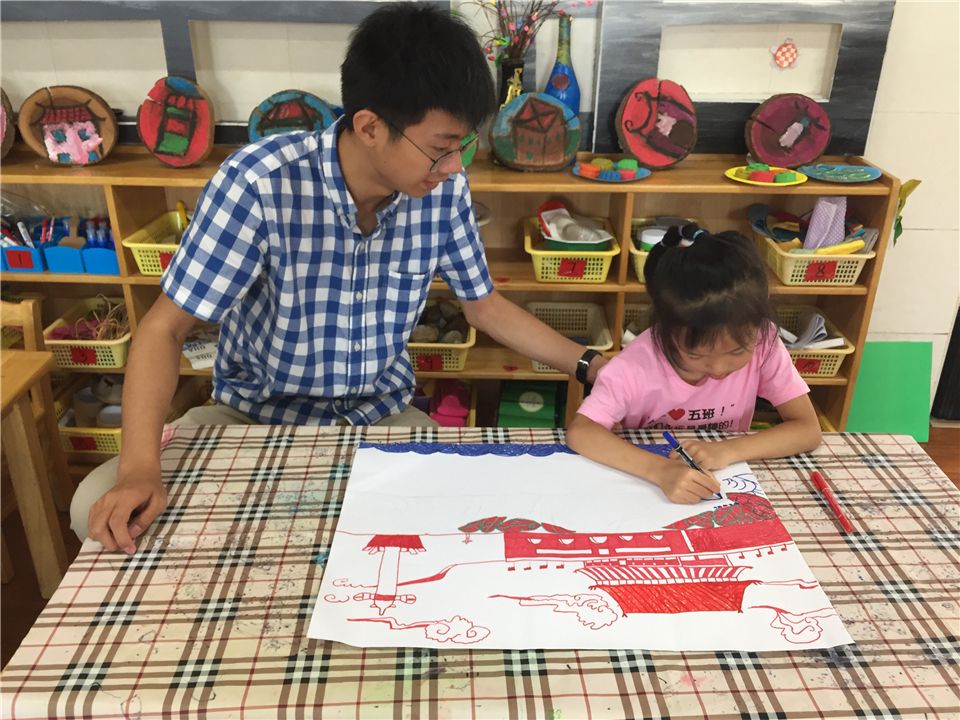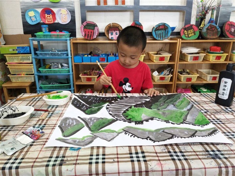 画下我的祖国美丽的风景参加幼儿园的小画展我是认真的。